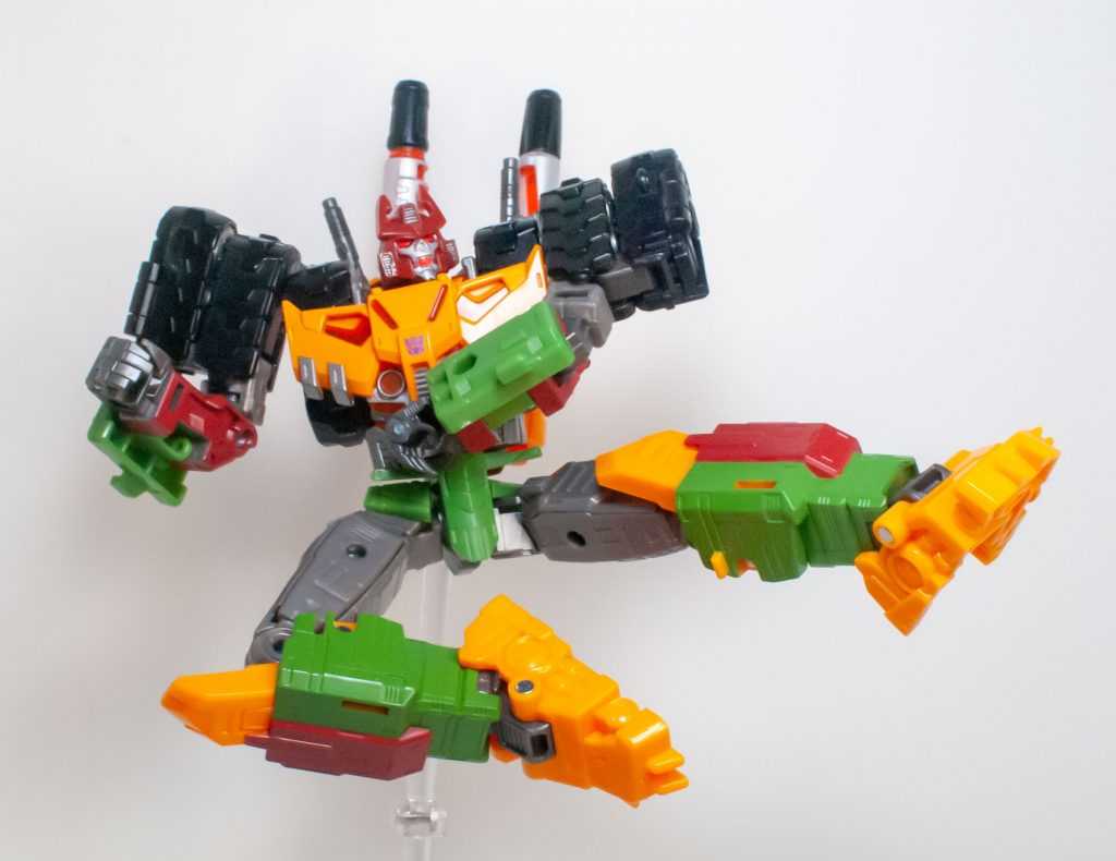 Bludge’s still really colorful in this mode, to the point where he almost ventures into “crazy-colored-knockoff” territory, but in a good way, if that makes sense. The orange, green, black, silver and brown are all pretty evenly distributed, nothing really dominates, and I think that’s why he has that vibe. Plus, the translucent orange bits look good.