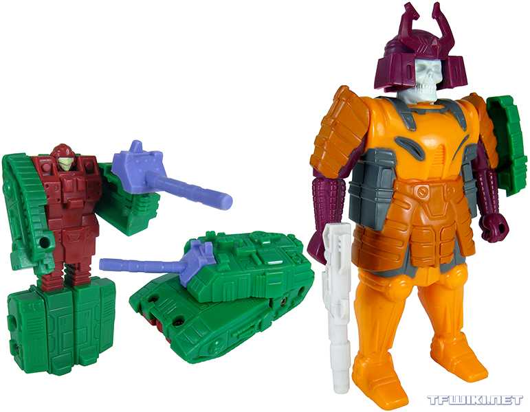 Bludgeon was one of the earliest recipients of the “Furman Bump,” where a Transformers author (originally Simon Furman, but other hands have done this) takes a random, semi-obscure Transformer, and makes them famous through the stories they decide to write. In this case, Furman looked at this small 1989 Decepticon Pretender, a tiny tank that could fit into a shell shaped like a Skeleton Samurai, and decided to make him a super-important villain in the latter chunk of the original Marvel Comic, a fearless, brutal martial arts mystic, who’d even become Decepticon leader.
