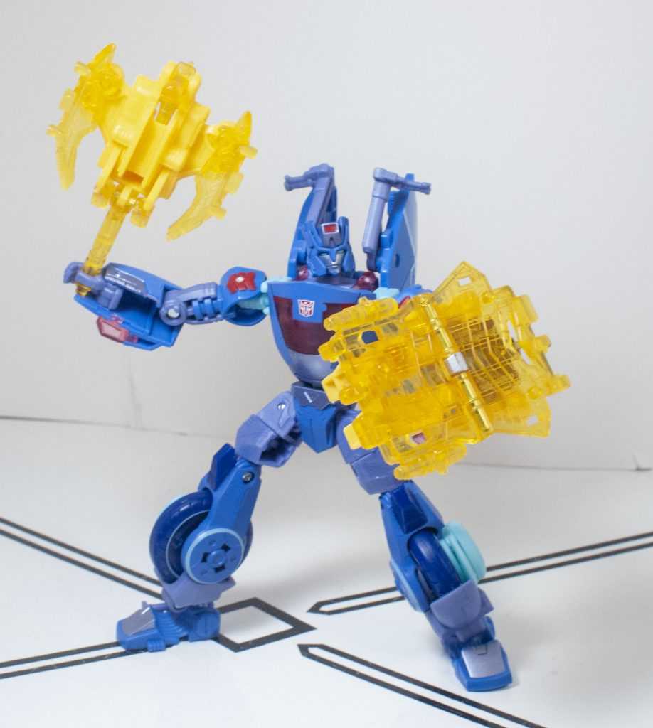 This new Legacy version, meanwhile, is based on her last television appearance, in the Cyberverse animated series, which loosely adapted her initial IDW Comics role (came with Windblade from Caminus), with the big difference being that the war was still on. However, it’s really a case of the “Cyberverse Universe” part of the packaging being kind of a nameslap, because this version of Chromia is a retool of a whole different character, Animated Universe Prowl.