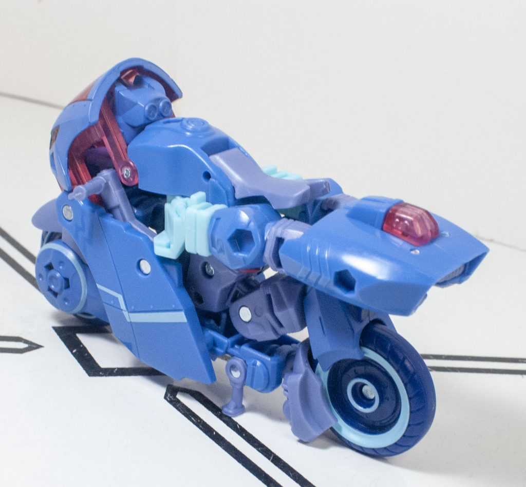 There’s a bit of that Transformers Animated-derived rounded smoothness to the rest of the bike’s proportions, but it only enhances the general vibe. One little bit of sculptwork I appreciate is that the back of her robot head copies a trick from Studio Series 86 Wreck-Gar, where she’s got little speedometers sculpted in.