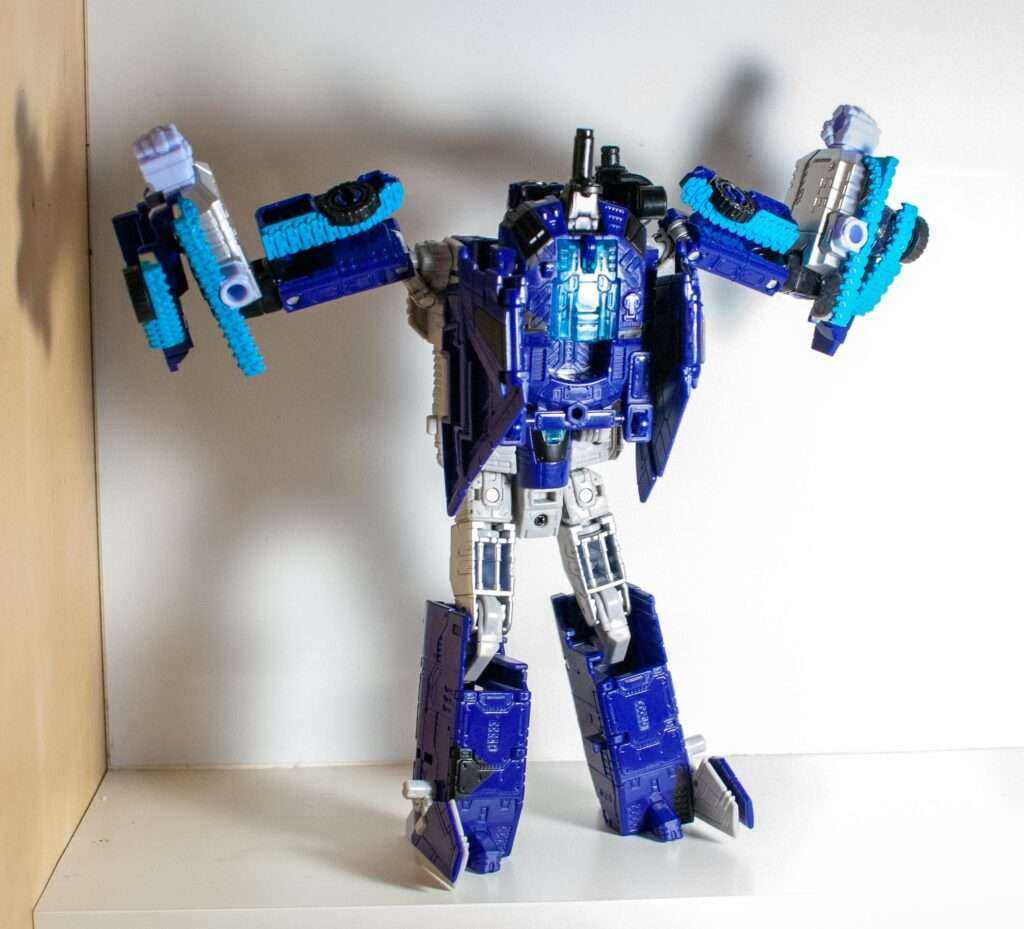 Putting him into his robot mode is probably the easiest transformation he goes through, since it’s all about stuff unfolding instead of collapsing, and it’s a lot more intuitive and obvious than his tank and jet modes are. Still, the wing and turret parts on his back just kind of hang there, and I felt the need to check the instructions to verify that was really all I did with them.