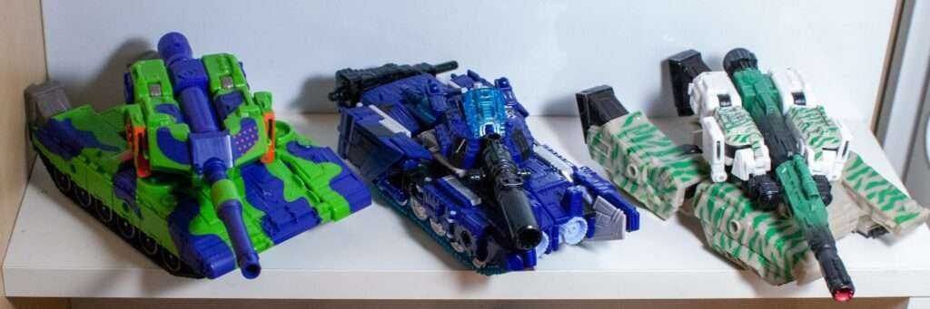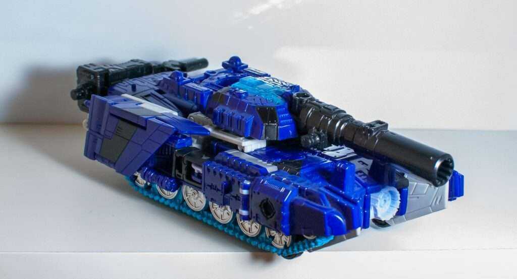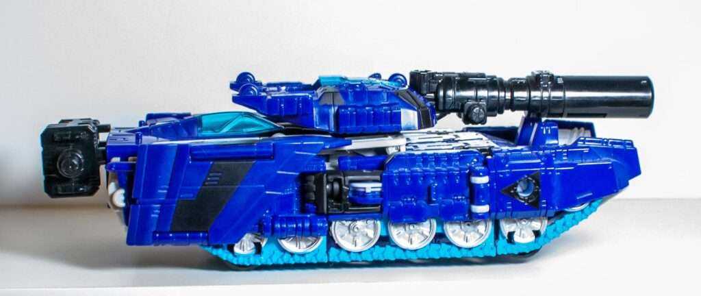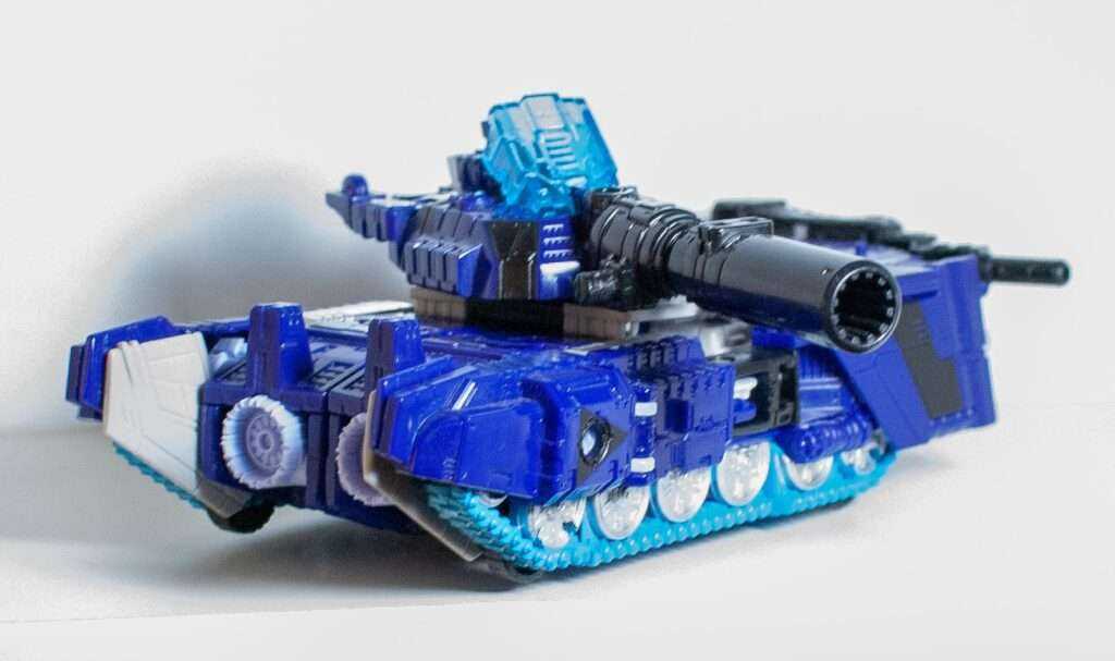 Right out of the gate, this tank mode is a lot messier than Siege or Earthrise. It’s still recognizable as a tank, but it’s oddly proportioned, with its small cockpit, and full of chunks of other modes, like the jet wings trying to hide at the back and front of its treads. It’s not as much of a rock-solid slab as the later two tanks, and the fact that he feels light and airy thanks to the kinds of materials Prime Wars Trilogy figures were made out of doesn’t help.