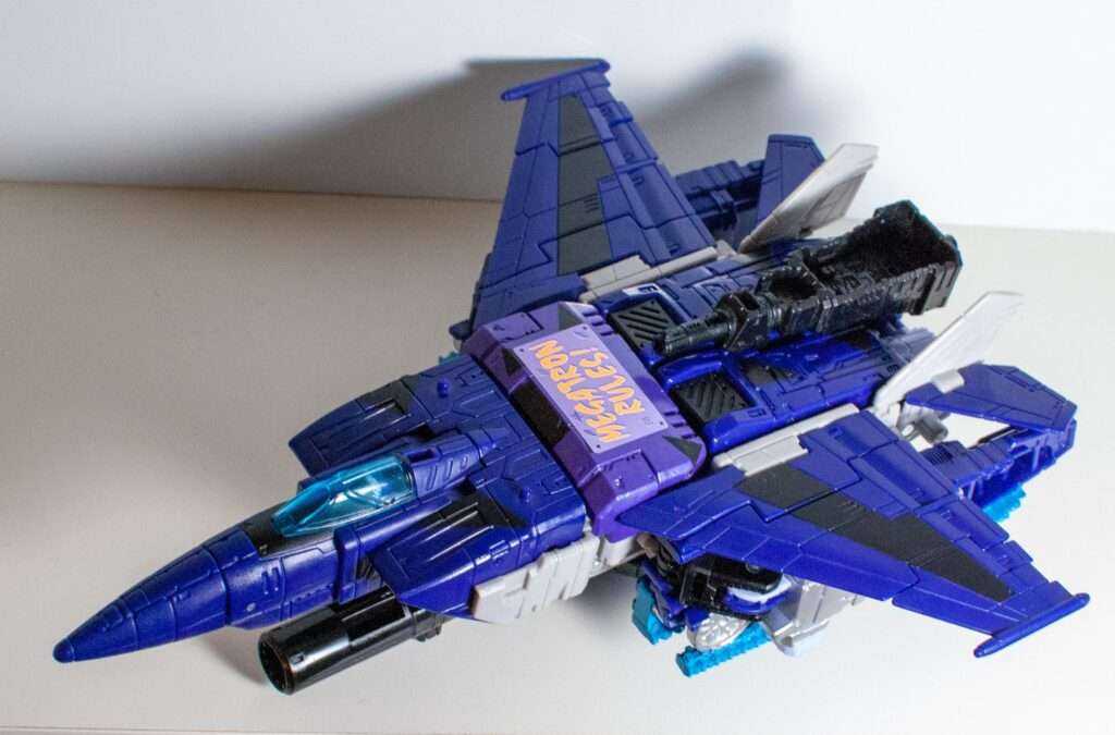 His jet’s top surface does get interrupted by an upside-down radical sticker, but that’s a choice I personally made (though, something’s going to be there upside-down regardless, even if it’s just a faction symbol)