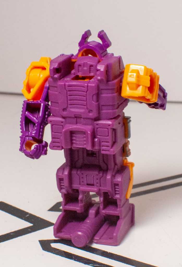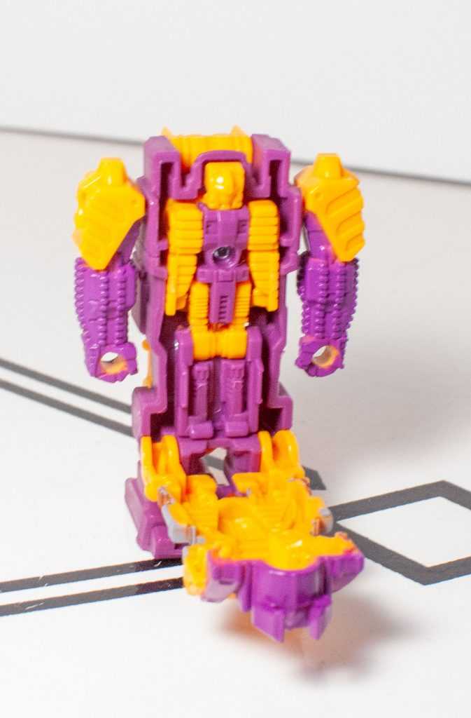 Once you pop him out, you have a figure of what’s technically supposed to be Quintus Prime, whom the Wiki tells me thought all life was sacred, and can grant powers related to creating life. Despite who the box says he is, though, he’s sculpted to resemble the original Bludgeon’s inner robot form, or rather, as much as they could do so on a figure this small, and proportioned this way.