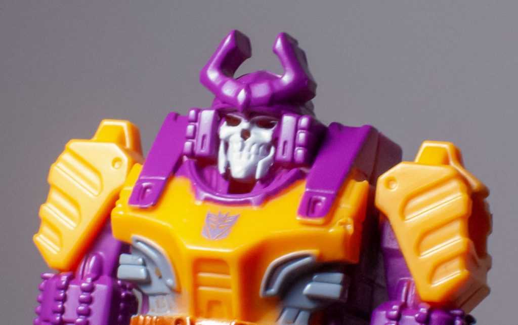 This block of plastic is sculpted really really well, though, in his familiar Skeleton Samurai Warrior style, and it’s extremely accurate to his G1 design. Tons of really specific details on his chest, legs, arms, and helmet are replicated here in miniature. The only point of deviation is the skill face itself, which now has a cool kind of cheek-mandible situation happening. It’s a timeless look, and even without Marvel picking him for the spotlight, probably would have made him popular.