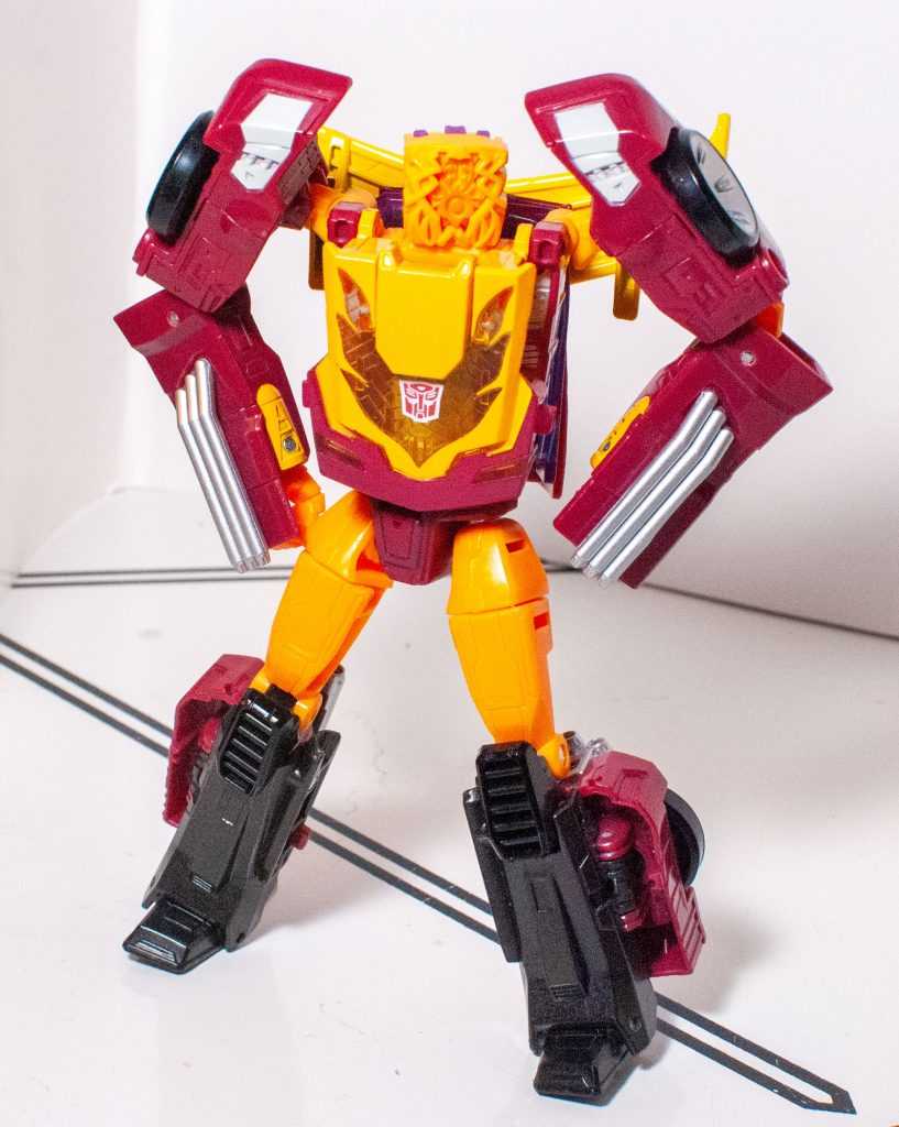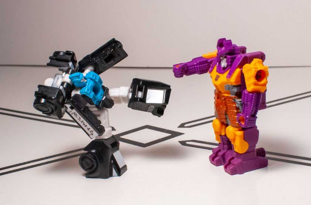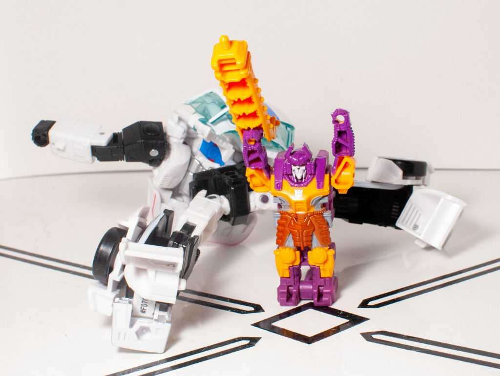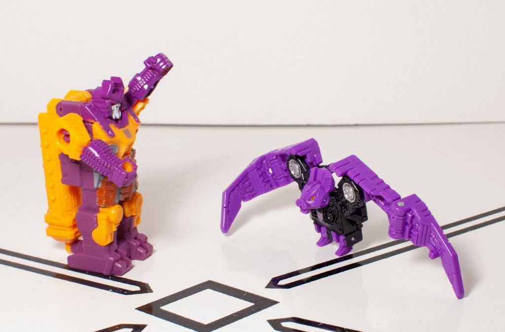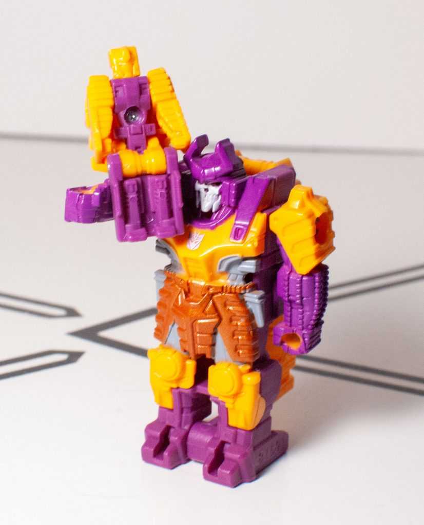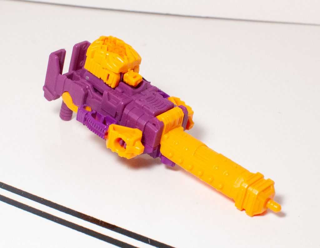 It’s kind of a nothing of a gimmick, honestly, and it leaves Bludgeon with a mode that’s even more nothing on his own. Now, if they had, say, sculpted the face of this to look like a tank turret, even if that turret was just a 2D pattern, then this could have been fudged into a really basic tank mode, which would have been good enough at this small scale, and would have resulted in a self-contained Bludgeon. This isn’t a specific problem to him, though, the whole size class is like this.