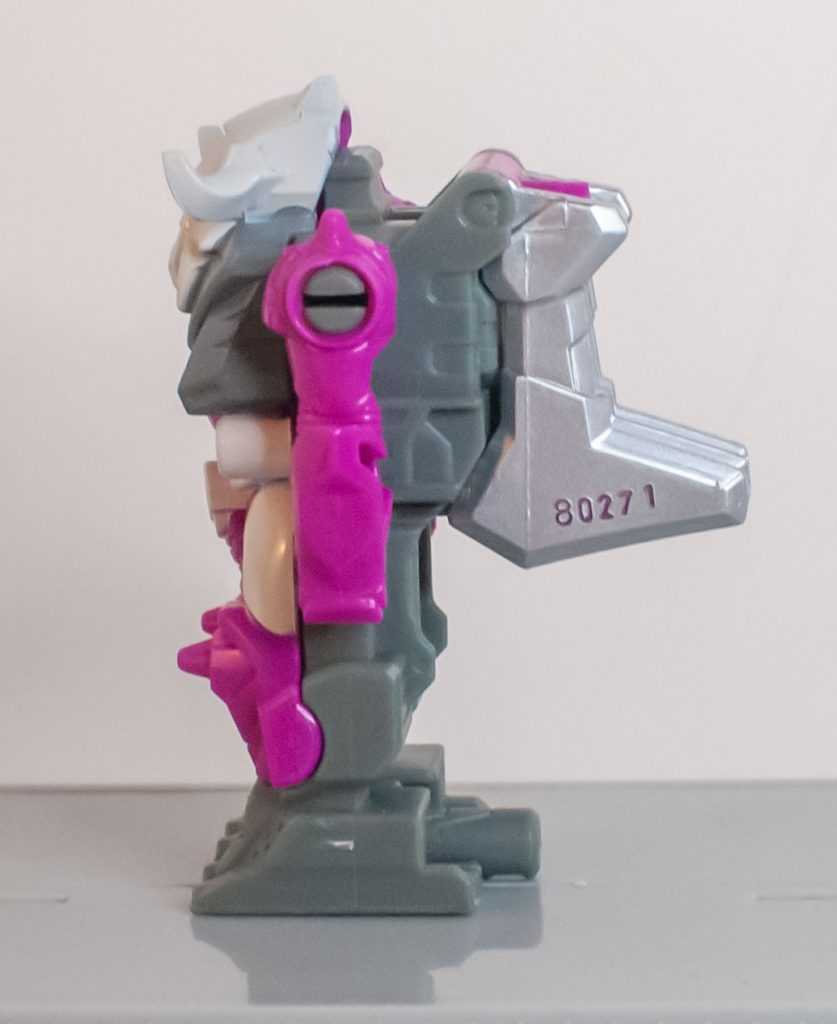 It works better than Bludgeon did, and one reason is because they got the colors right, though that’s probably because he’s the same purple and gray as the shell. Still, they also found a tiny bit of paint budget for his head, making his face and helmet separate colors, and that little bit really goes a long way.
