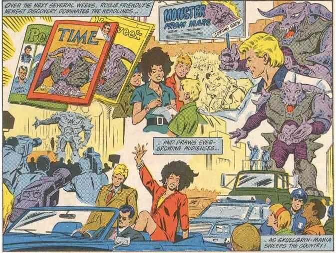 Previously, on Bot Reviews! I took a look at Legacy Skullgrin, who turned out to be a bit of a sleeper hit, and a surprise highlight of the Legacy line for me, because of what an endearing oddball on a conceptual and engineering level he was, on top of just being a good figure. But while I liked what that version was doing, a part of me still wanted to see an update of the character that preserved his original gimmick of being a Pretender, a Transformer who, in addition to his standard robot and alternate mode, could fit inside an organic shell for an additional layer of (questionable) disguise. Or maybe that extra layer was power armor, or an environmental suit, depending on the author. Speaking of authors, let me take a moment to again plug his only starring role, the reason most people care about him in 2023, Bob Budianski’s Marvel Comics issue, “Monstercon from Mars.”