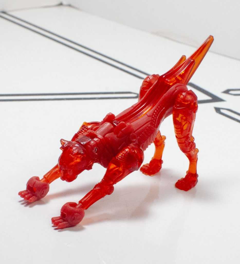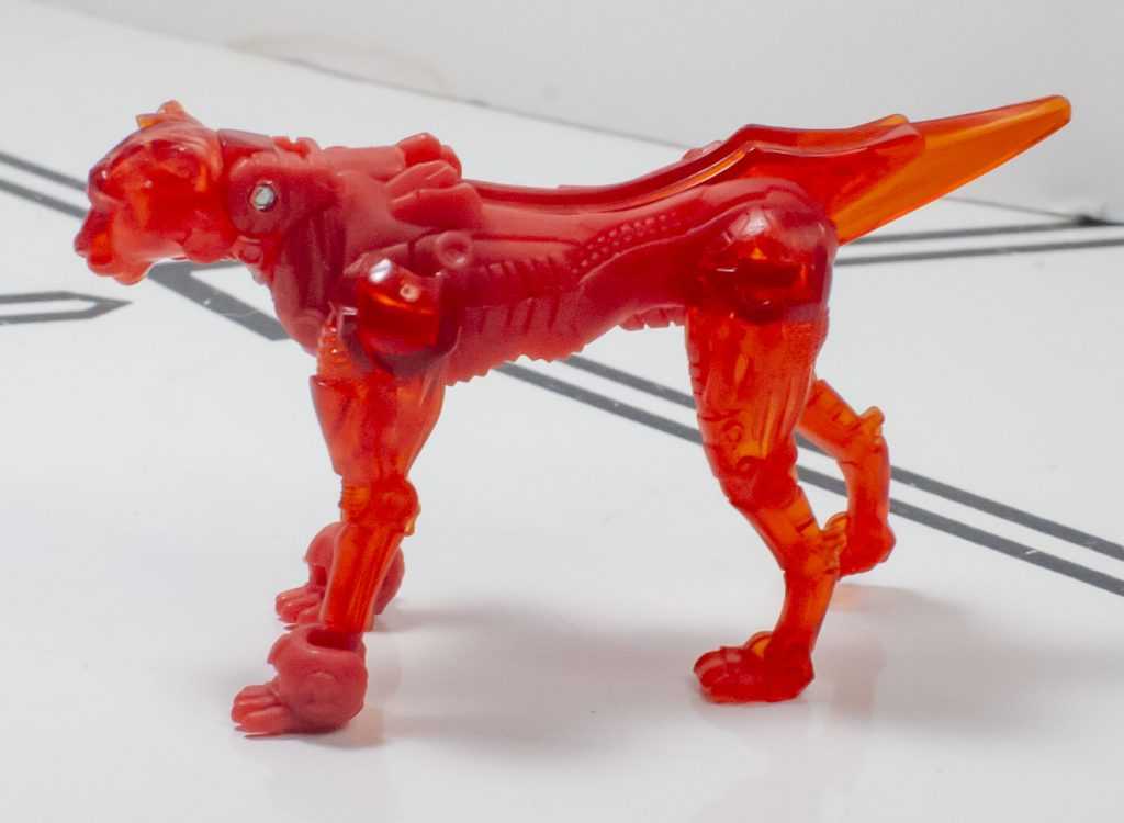 A lot of these Campaign Items tend to be clear repaints, for whatever reason, and Burning Cheetor is no exception. In fact, he’s just two colors: Clear red, and opaque red. The clear bits on his head, legs, and back are very deep, almost Cranberry-looking, while the opaque torso and feet are a bit lighter. There’s no paint on him anywhere, which is a tiny bit of a disappointment, he could have used a little something on his face to bring out the sculpt, it’s entirely washed out.