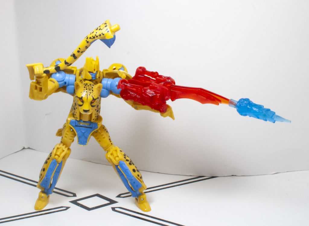 It’s a robotic cheetah, that’s what he was. And it really is more “robotic” and less “organic,” between the visible pistons on his legs, the angular “ribs” on his torso, they’ve definitely leaned more into tech detail than fur detail. The only obviously-wrong thing is his pointy spike of a tail, and that’s necessary to facilitate his altmode.