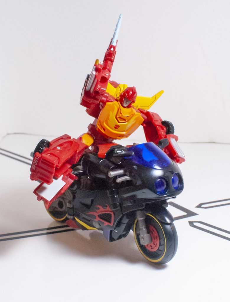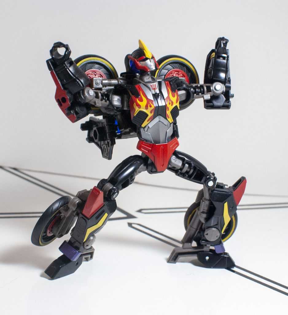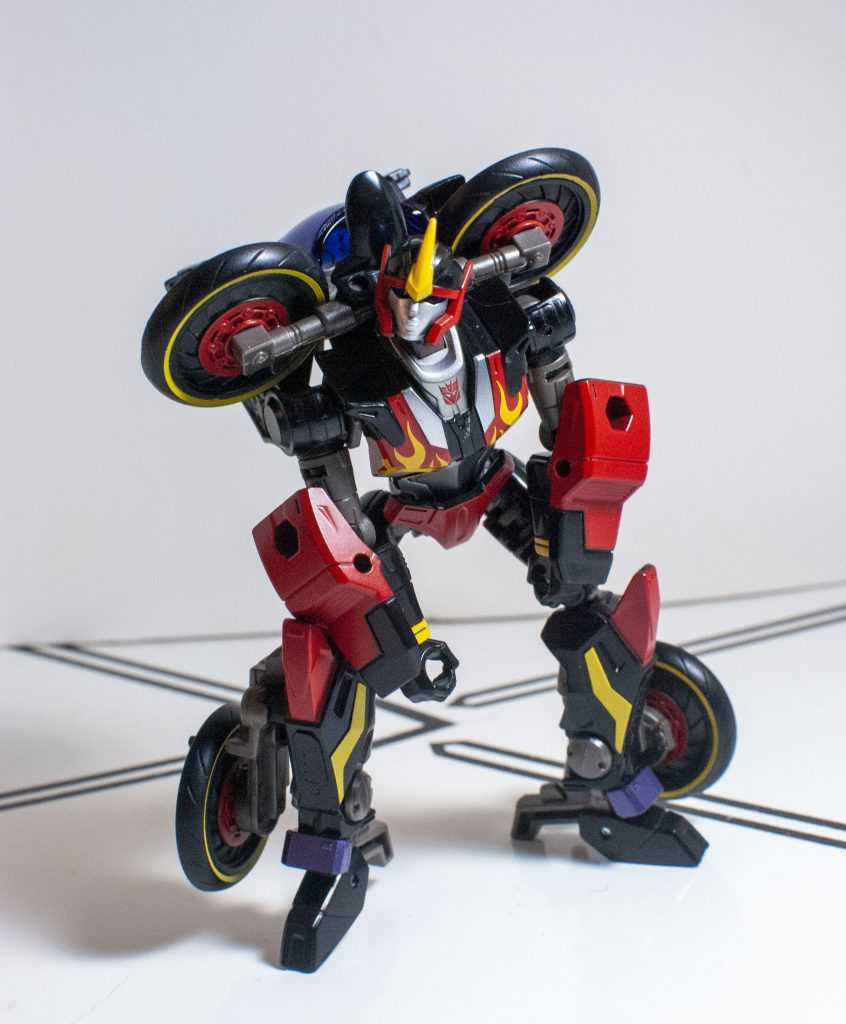 Like Road Rocket, Flamewar changes into a semi-realistic motorcycle that doesn’t seem to reference any particular previous design.