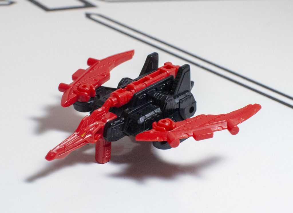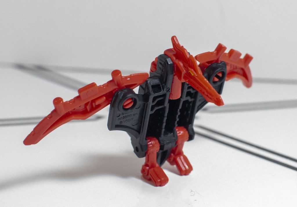 Like all Battlemasters, they’re a fairly simple thing, cast in the two plastic colors, with a smidgen of yellow paint for the eyes. But for a simple figure, Fireglide’s deceptively poseable. They’ve got a head that swivels up and down, wings that can spread out, and legs that are poseable at the hips, meaning this bird can roost, or go into flight mode.
