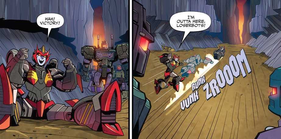 The 2019 Transformers comic already had a habit of making use of obscure characters, and under Ruckley’s pen, Flamewar was rewritten as a chaotic, loudmouthed, enthusiastic-but-self-centered troublemaker with a short attention span, as much of an issue to her own team as the enemy, and a source of a lot of funny moments in the comic.