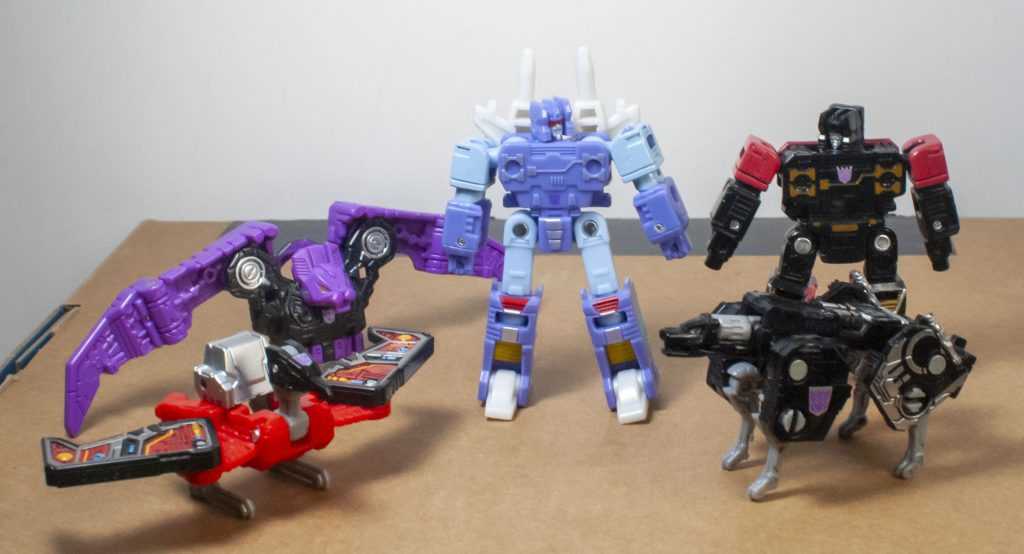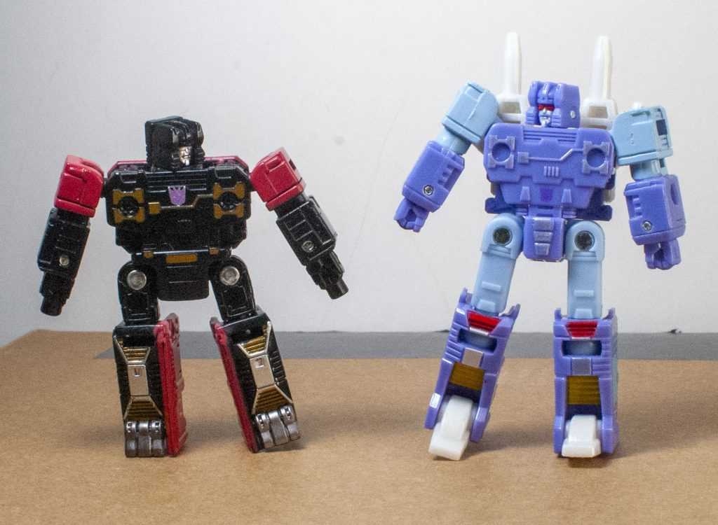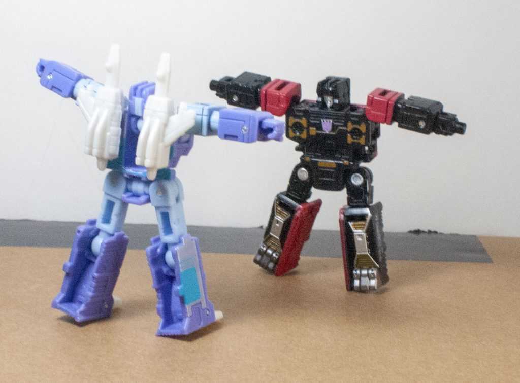 I’ll admit, though, when it comes to his scale futzing, what were they going to do, make him change into a bigger cassette that no current Soundwave could actually use? I’m wracking my brain, and the best I can come up with is HasTak having done him as new two-pack with Frenzy (red) instead of a solo figure, but then we’d have probably lost the extra accessories, at the very least. So, I’d recommend him, but only kinda-sorta, in that I think he’s good, but he’s overpriced, especially since Cores are so oddly expensive these days. And he’s so rare that you’re not likely to find him on sale, if you can find him at all. But there’s a leaked listing for an upcoming Leader-class Soundwave, which some are speculating might be the Netflix Voyager, with a big assortment of cassettes, so maybe he’ll be available there. As for me, I’m going to skip out on the Frenzy (Red) repaint that I’ve already seen on shelves, and keep the older Siege Red Rumble as my Frenzy. Them being different toolings anyway is an interesting visual.
