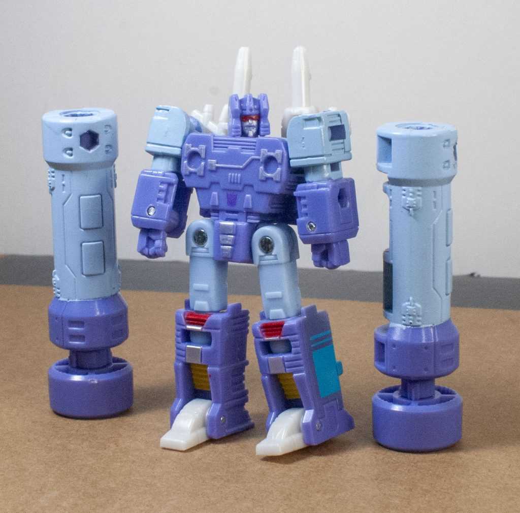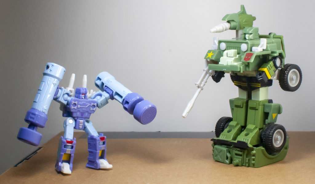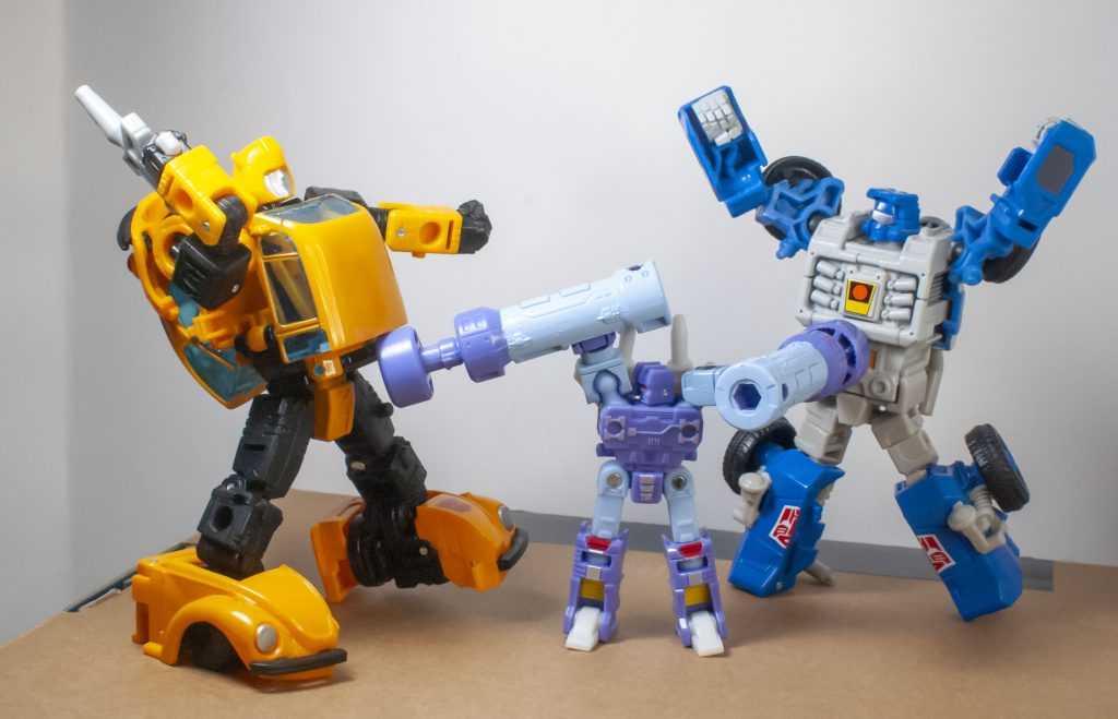 The next thing to draw people’s attention was that there’s some size-class malarkey going on with this figure. Rumble’s basically a Micromaster-sized figure being sold as a Core-class figure, with extra accessories and engineering beefing up the price point. This isn’t the first time this has happened in recent Transformers history, and the results have had highs and lows. (A high would be Studio Series 86 Hot Rod, which was a really good figure, and a low was Studio Series 86 Ironhide, which, frankly, felt like a ripoff), but it is the first time this phenomenon has happened on such a small scale.