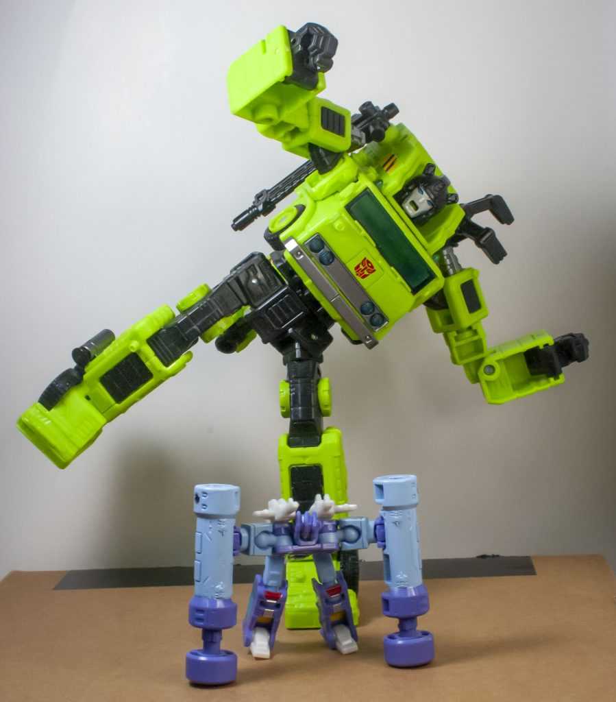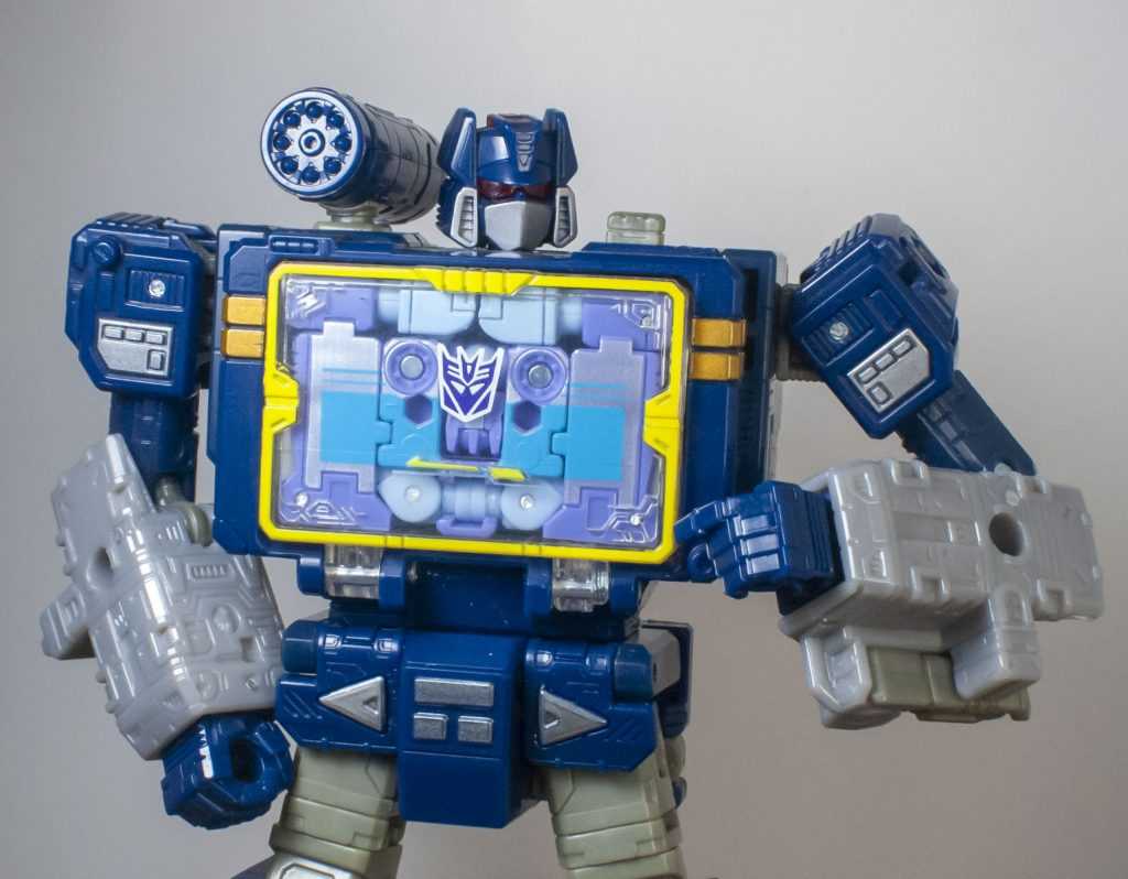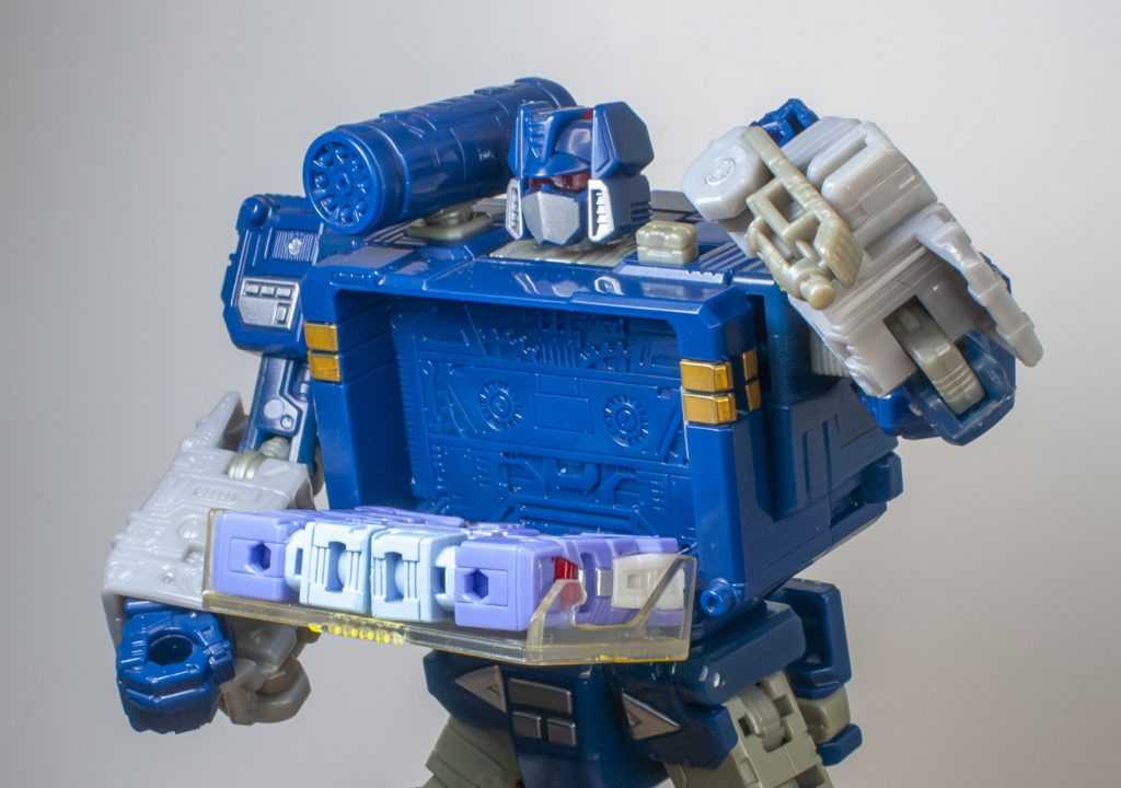 For features, Rumble is missing the flip-out peg all the other Micromaster Tapes had, where Soundwave could mount them on his arm as a shield, and I kind of miss that silliness, but admit it would have meant his whole torso would have to work differently.