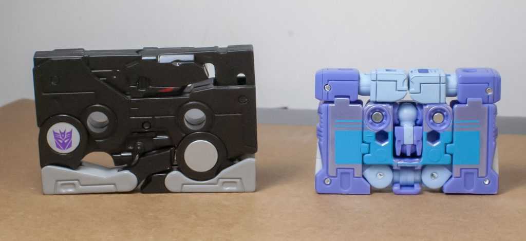 So, this is the reason why he’s so small, because he’s the exact same size as the various other War for Cybertron-era Micromaster cassettes, so he can still work with Siege or Netflix Soundwave (or any of his subsequent repaints and re-releases). And, to be fair, he fits in Soundwave really well!