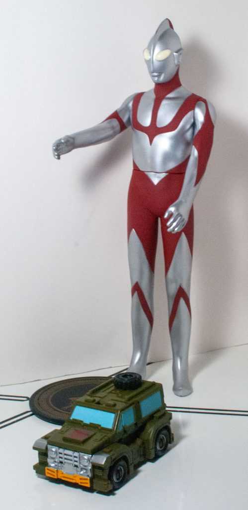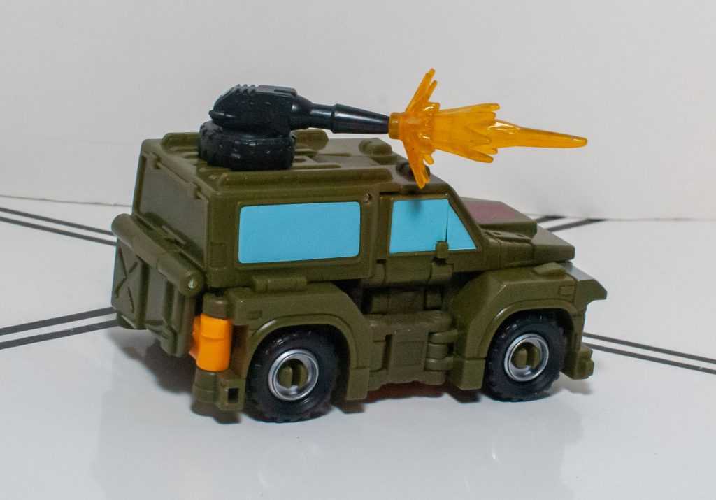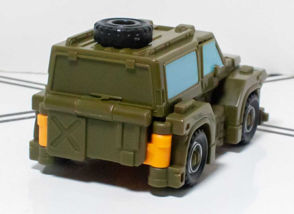 Brawn’s big, armored offroad Jeep comes across as wider and more massive than the show design, or other toys of him. I’m not complaining, it’s a good look. He’s small, but feels big and massive. I think it’s the tiny wheels.