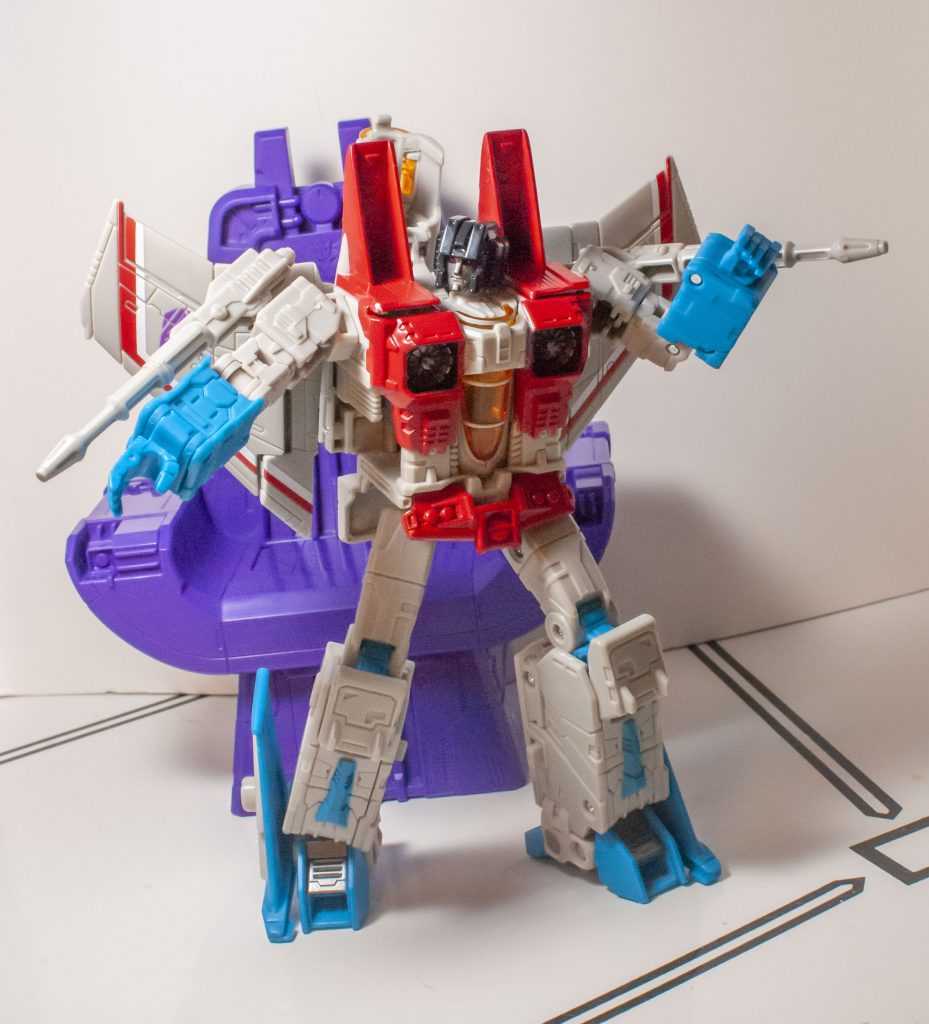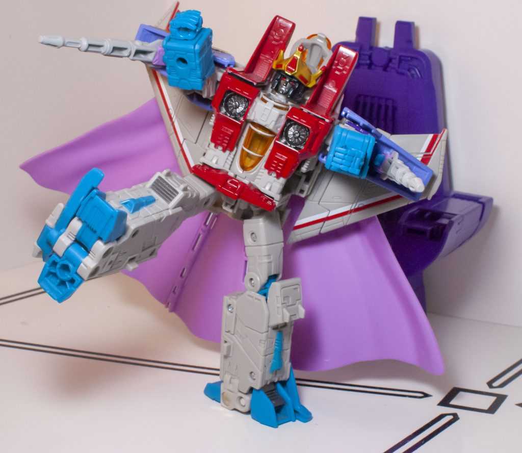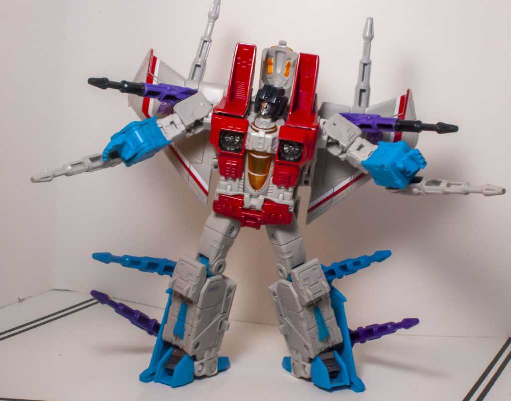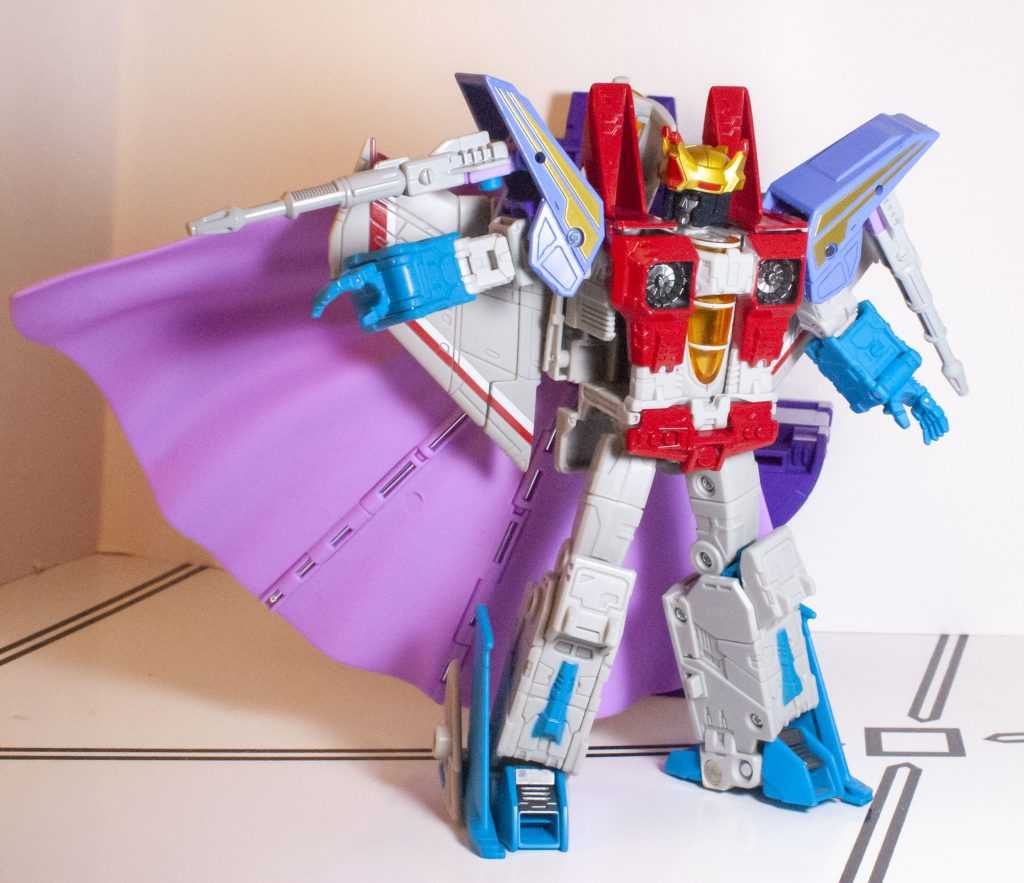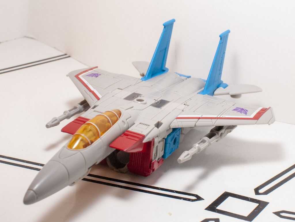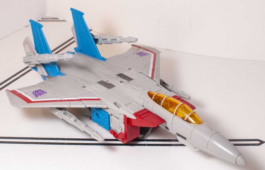 It’s still a good-looking, cartoon-style jet mode, though I do find myself wishing he had landing gear (again, the Classics one did.)