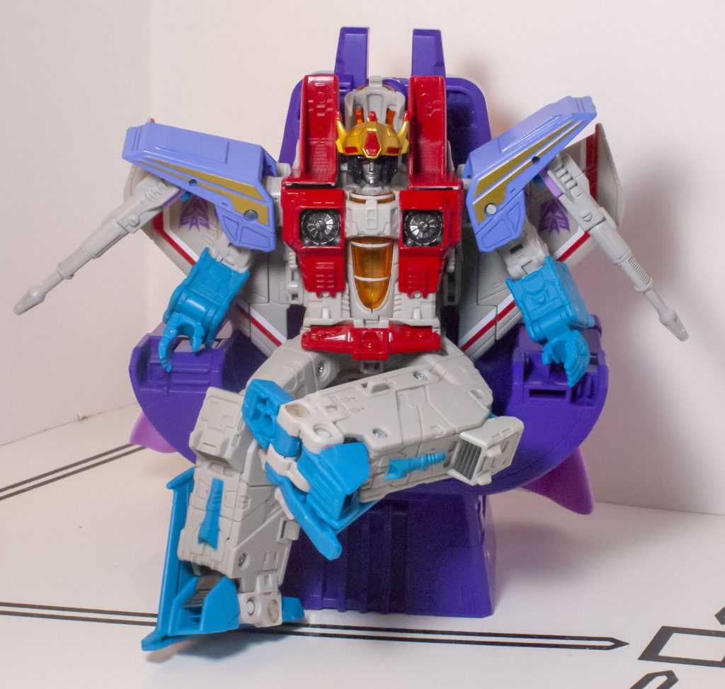 Starscream sits in it well, though you need to unclip his cape to do so.