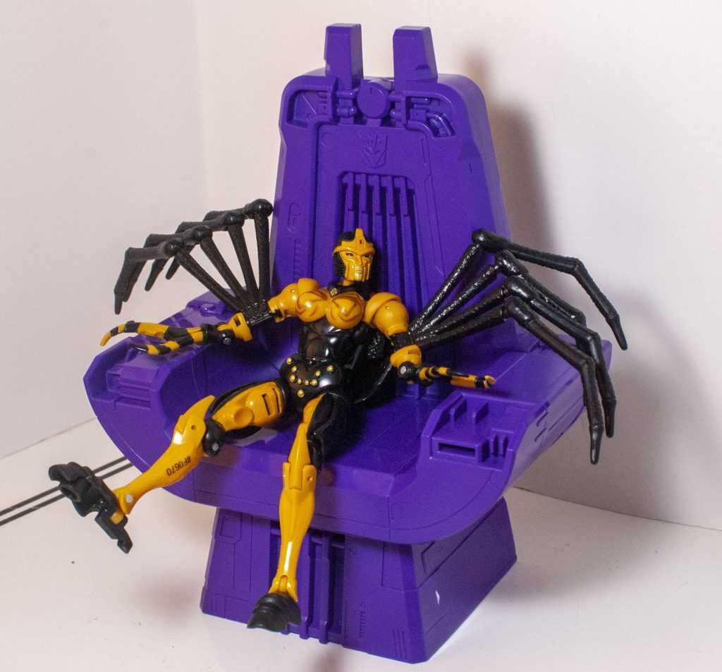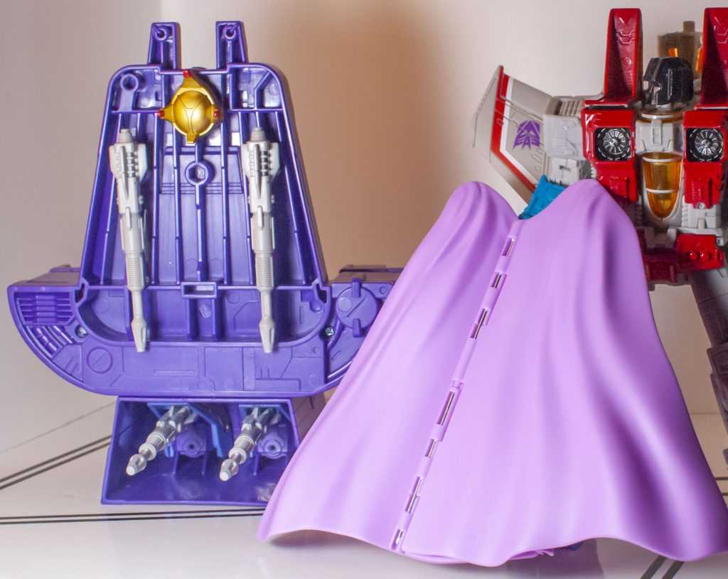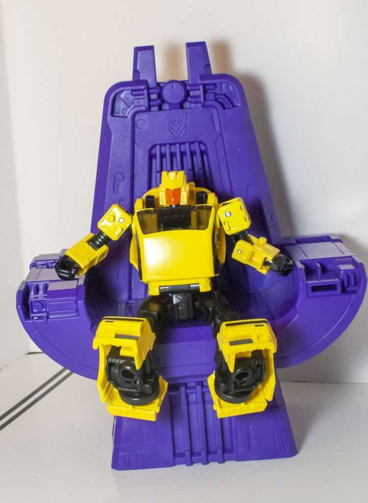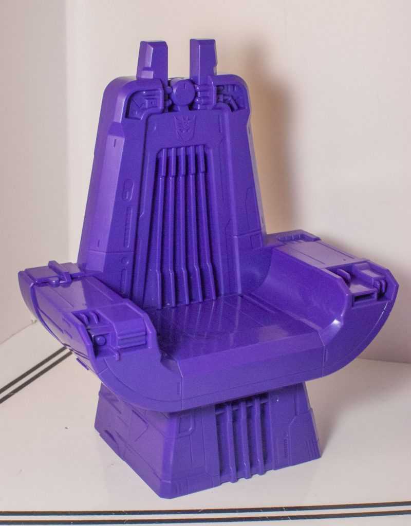 Reflexively, you’d think this was something from the same specific movie scene as the rest of the gear, when in fact, there’s no throne in the scene (though a pillar-like object behind him is easily mistaken for one). Instead, this is specifically based on the command chair Megatron sat on inside the Nemesis, in the show’s first episode.