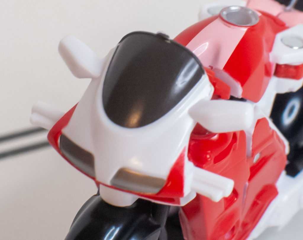 On top of that, everything on it holds together nice and securely, though there’s one odd bit of construction: There’s some sharp mold flash on the top of the sculpted windscreen, and I do mean sharp, it’s outright unsafe.