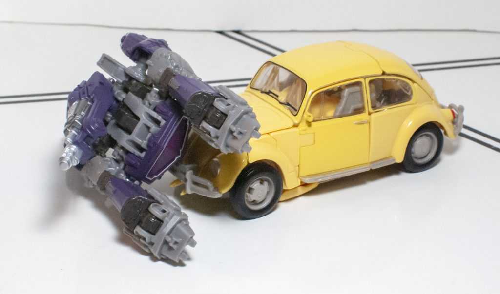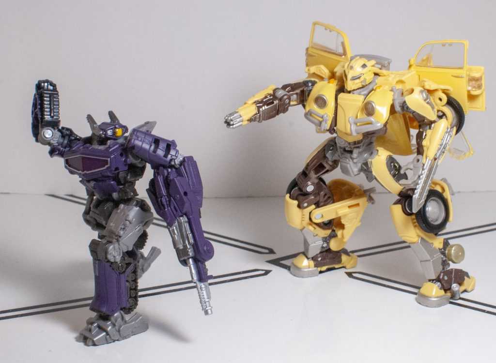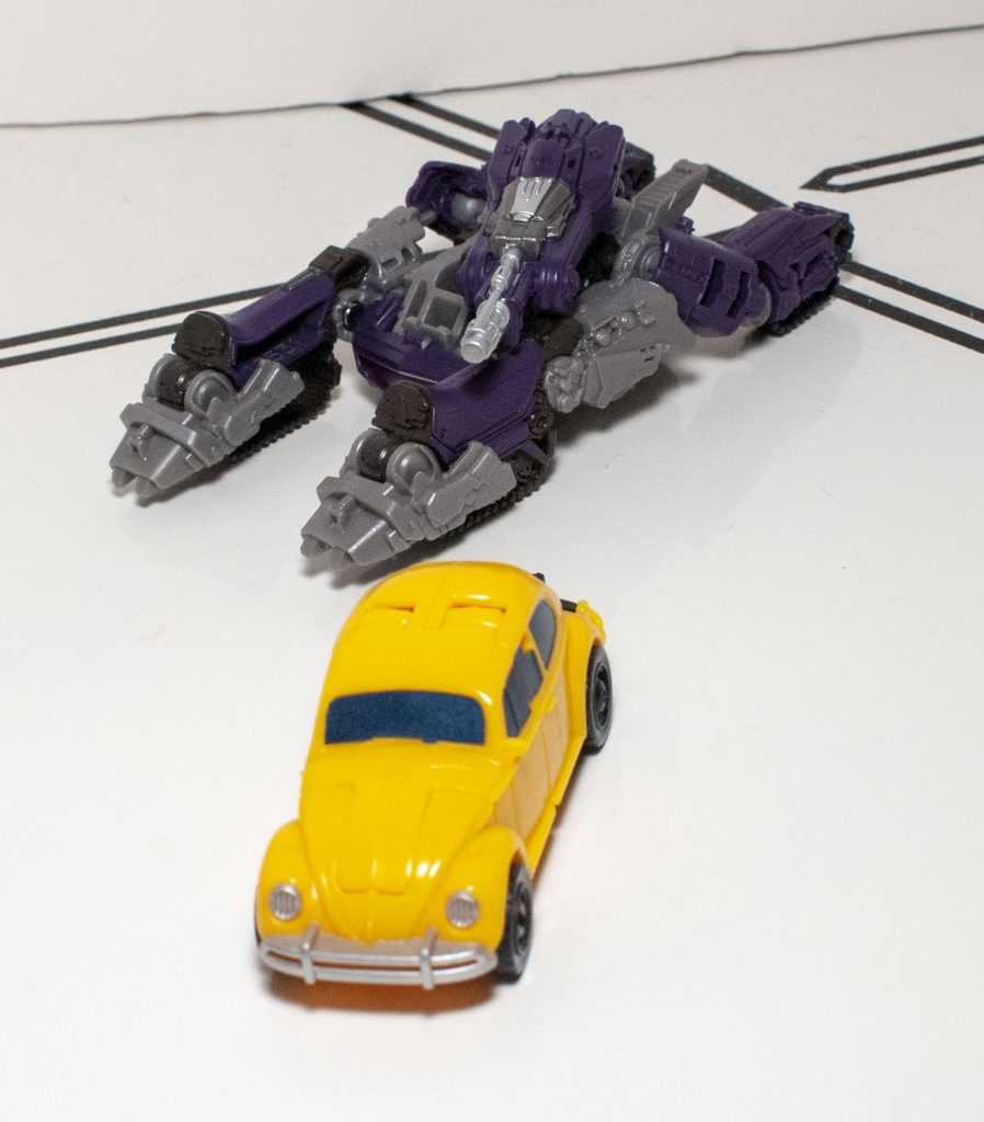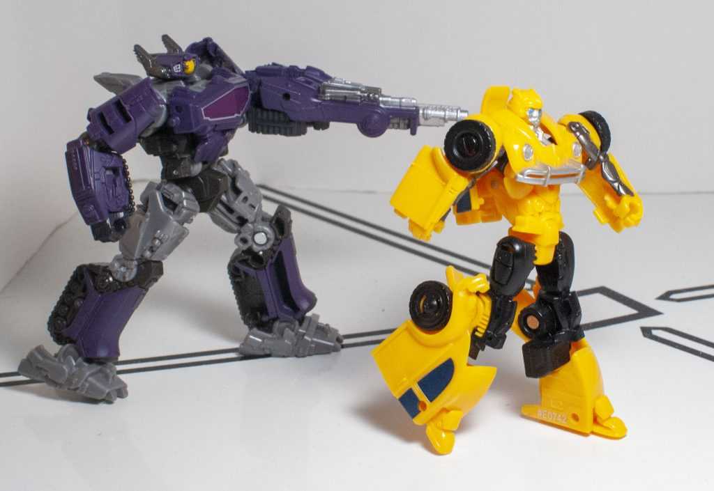 And it’s hard not to notice that, whereas all those other Small Shockwaves have similarly small friends and enemies, this Shockwave’s really a complete loner, scale-wise, since there’s few-to-no other Bumblebee movie (or even Bayverse movie) mini-guys (Ravage scales with the larger folks), meaning he’s very much alone, the odd one out.
