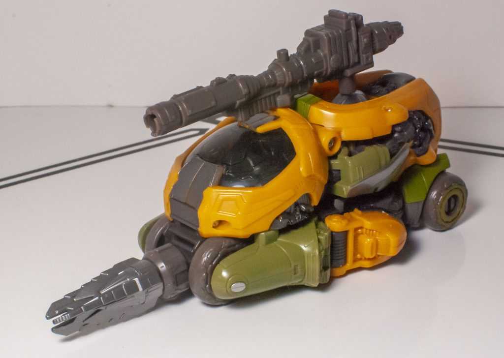 It also makes the whole alternate mode read almost like an insect to me, between the segmented, rounded body, and the drill resembling some kind of proboscis. Hey, between his “armored beetle” motif in his robot mode, and this, we have a visual theme here.