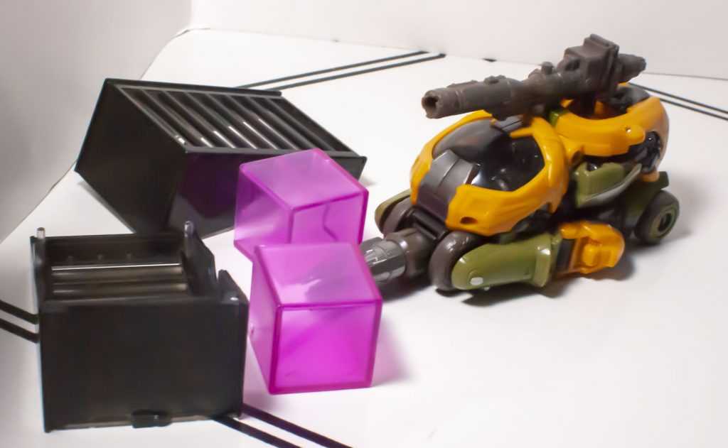 I groused during Ratchet and Wheeljack’s reviews that I wished they came with some more characterful accessories than just their Big Guns, and Brawl shows why. Firstly, he does include another large gun.