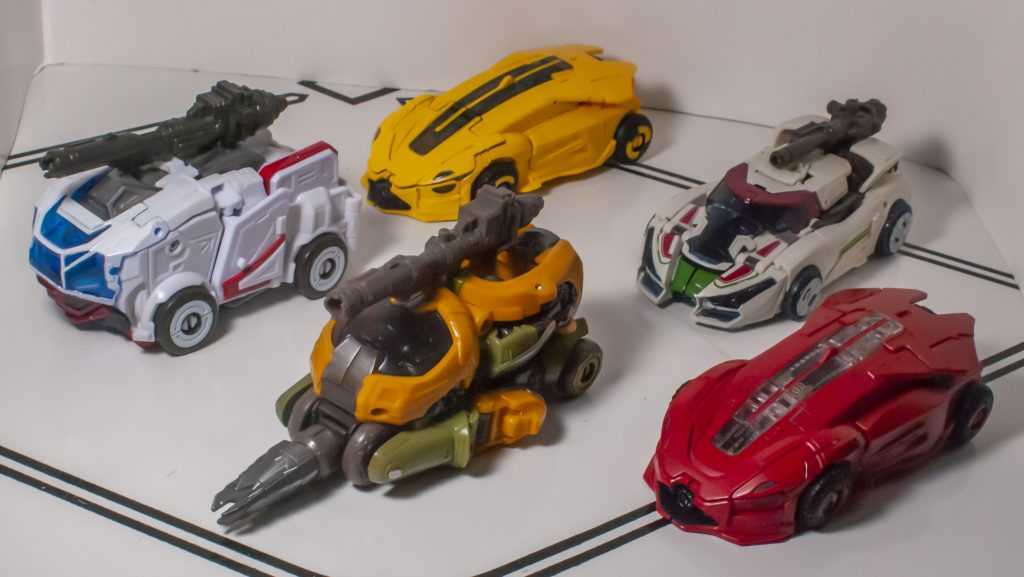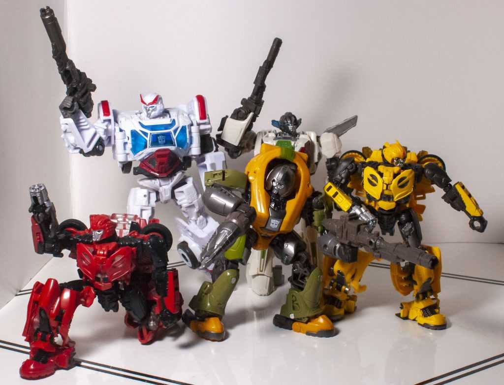 Top to bottom: Optimus, Ratchet, Wheeljack, Brawn.
