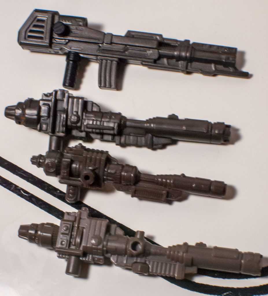 This is, again, the same size as Ratchet and Wheeljack’s, and roughly the same shape (probably because their CGI models in the films just slapped new details onto Prime’s gun), but it’s yes another marginally-different new sculpt, and cast in gray this time.