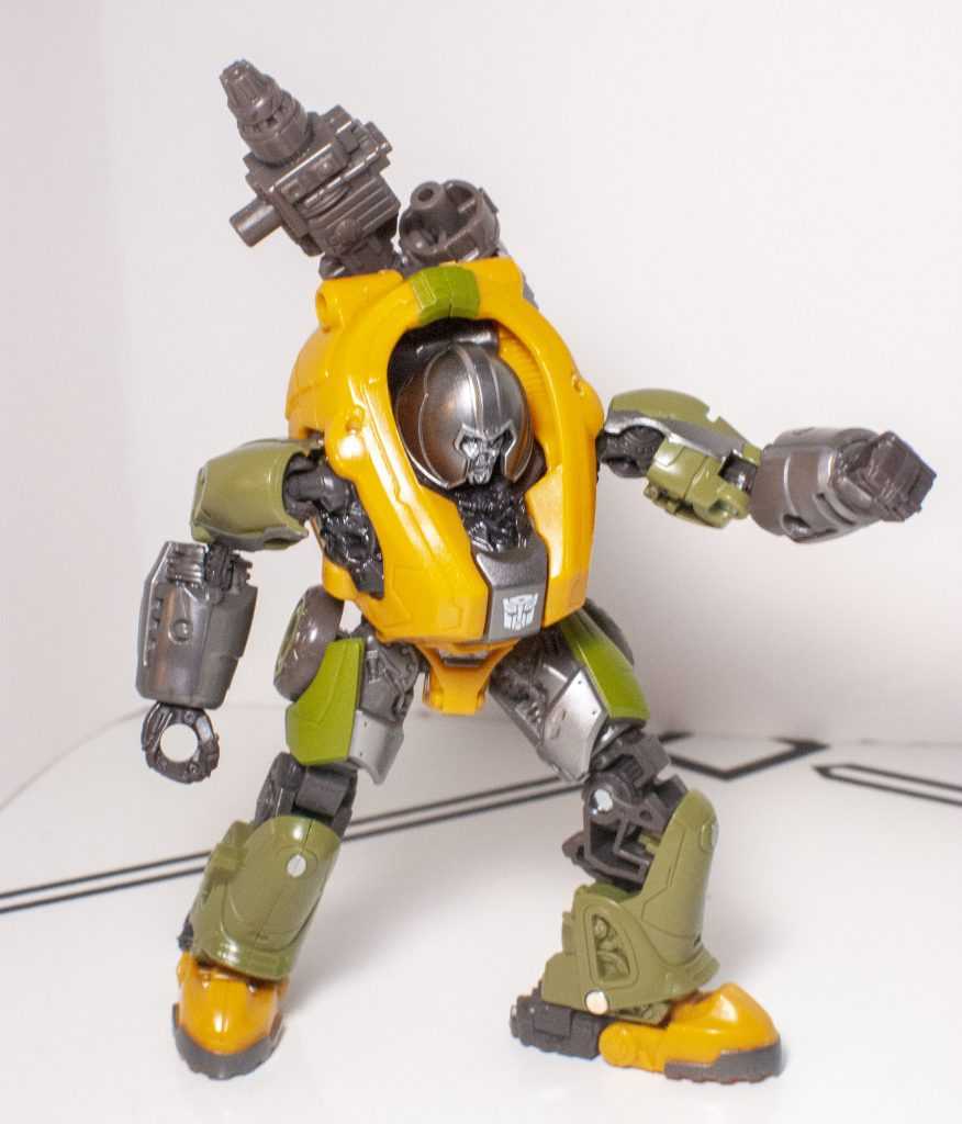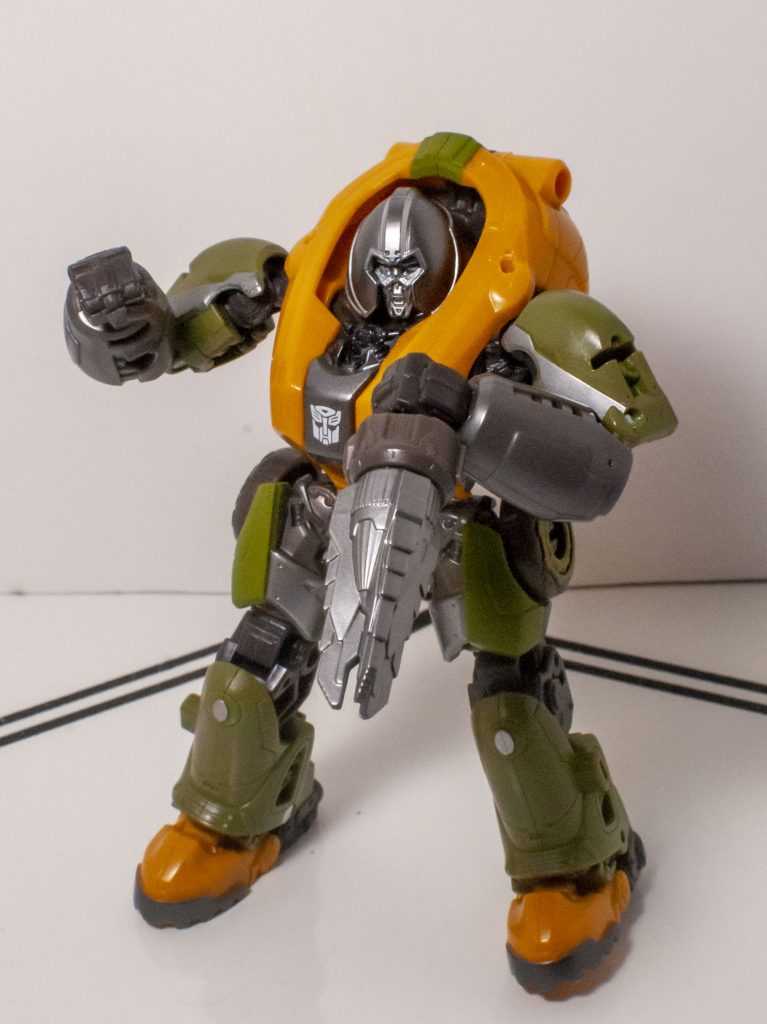 Speaking of Bee, Brawn’s shorter than the yellow guy’s various Studio Series figures from this movie by about a head, not counting Brawn’s hoodie/hunch/really big collar. But between his thick, rounded limbs, and the general chunk of him, Brawn still feels substantial.
