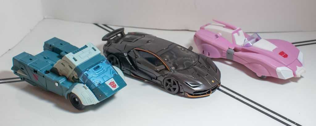 To the designer’s credit, it’s not as shell-former-ish as this type of figure can be (looking at Studio Series Bumblebee), and it’s at least reasonably clear where everything goes. Still, get ready to do a lot of panel-massaging, and squeezing to make seams vanish. Oh, and those hips WILL pop out when you’re rotating the waist, as will a pair of small panels inside the feet that become part of the back of the car. On the positive side, unlike some examples of this genre of engineering, the connections all feel solid enough that I’m not worried about critical breakage, and after a transformation or two, I had it committed to muscle-memory.