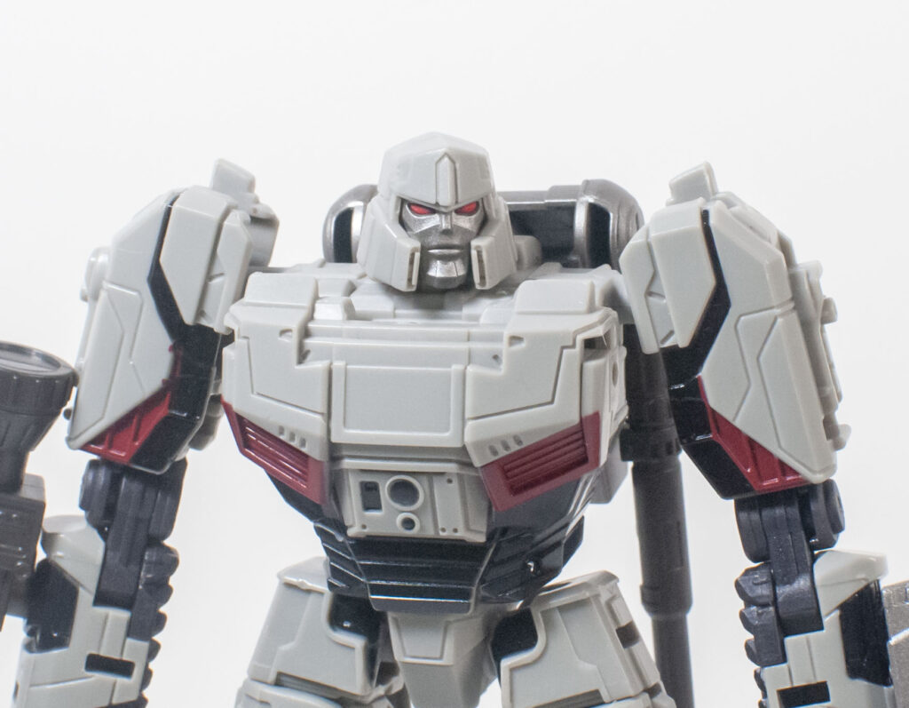 I think they just picked a good shade of gray, one that isn’t too dull, or too flat, and picks out his details just right. One thing that he reflexively feels like he’s missing, though, is a Decepticon symbol right smack dab in the convenient flat panel in the middle of his chest, but it’s blank.