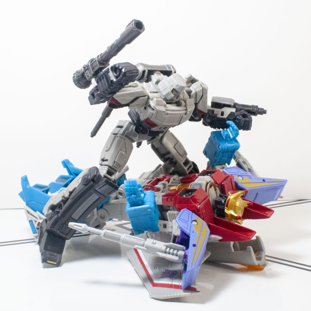 Wrong cannon aside, he’s a great representation of the interesting, complex character from the film, and beyond that, he’s just a good, all-purpose Deluxe Cybertron-Mode Megatron. If you have an Optimus for him to fight, like I do, great, but even if you don’t, I think this guy’s worth getting on his own merits.