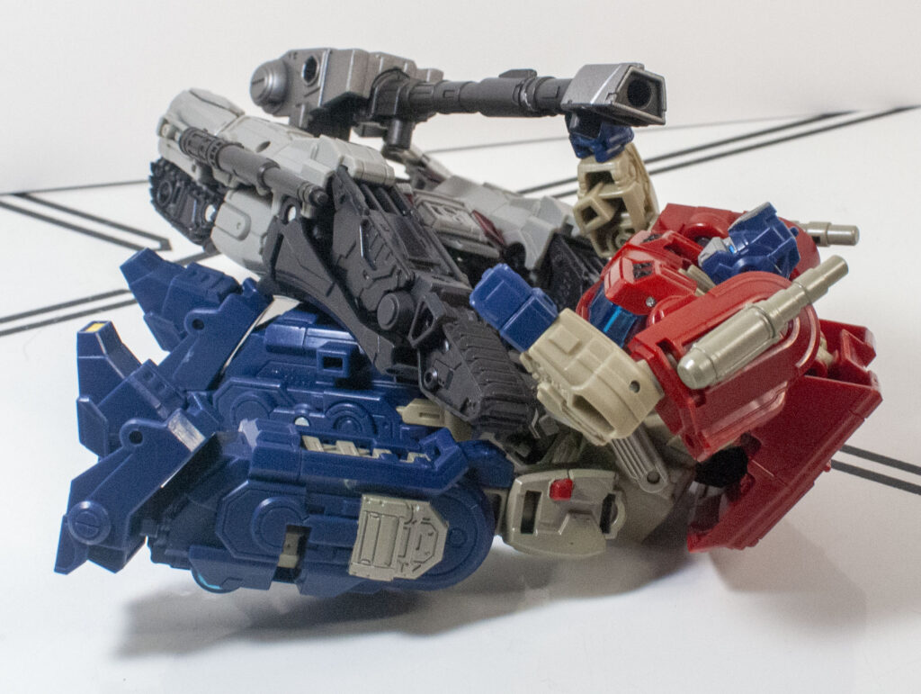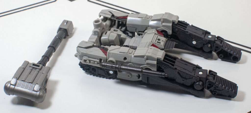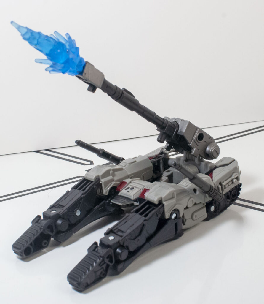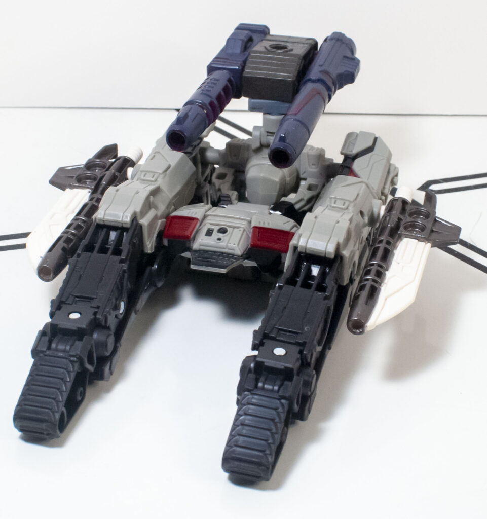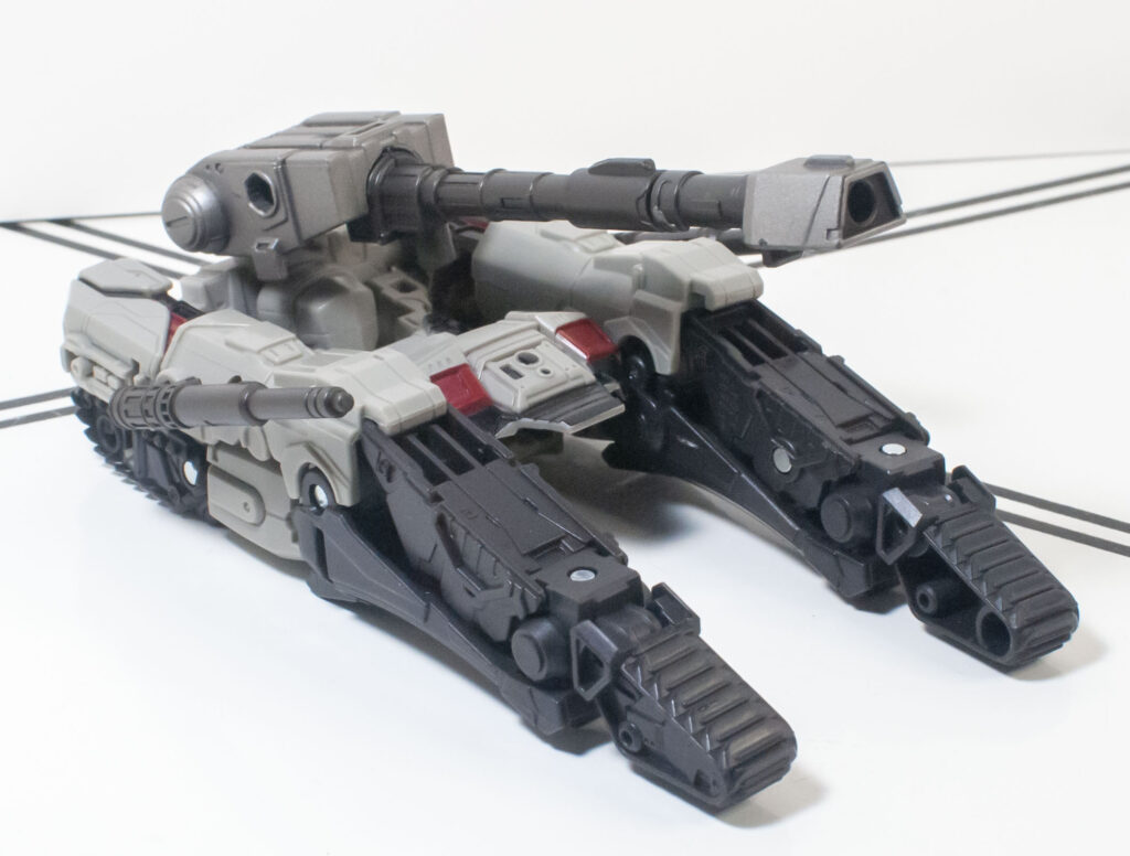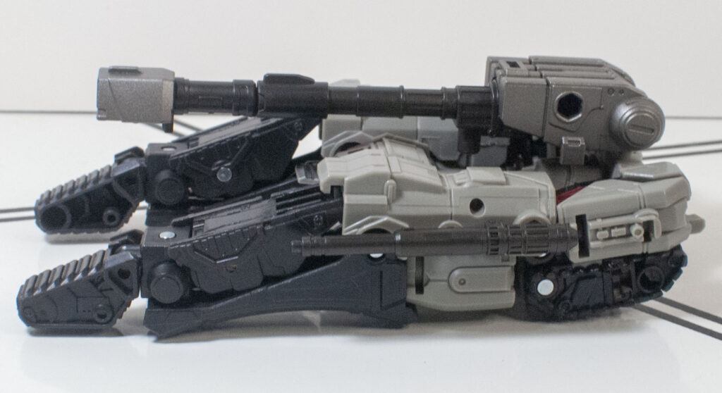 However, it does clear a bar that a lot of Cybertronian tank modes don’t: It actually does look like a tank, and not a pile of random stuff with a turret on top, even if the middle of the tank is blatantly a re-arranged robot torso, with a tucked-away robot head.