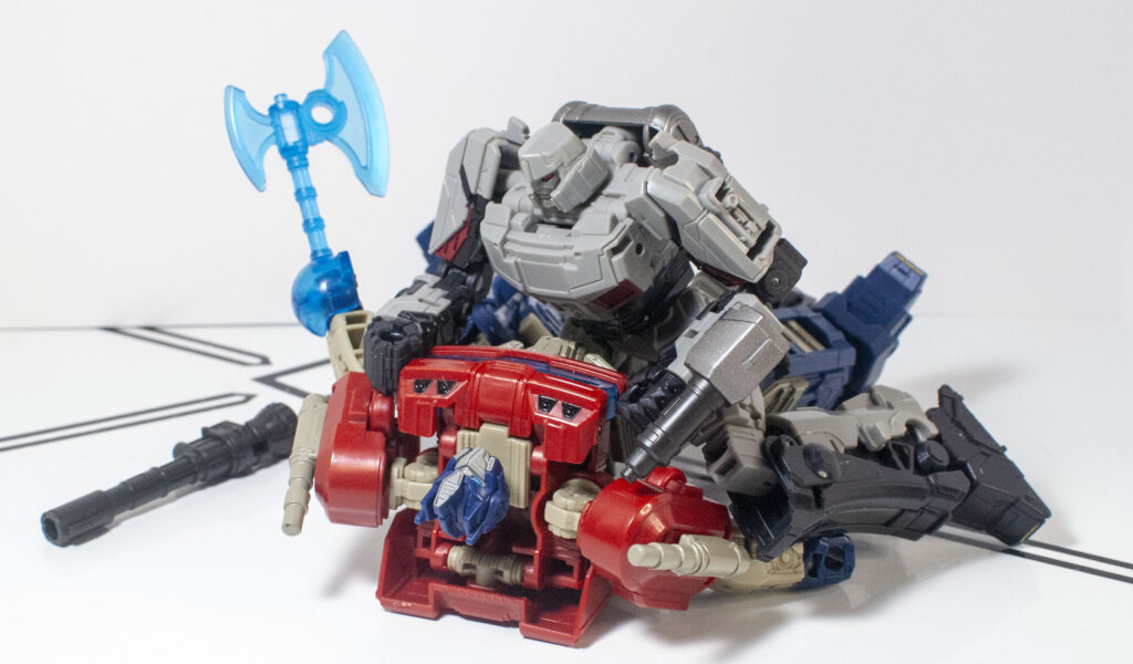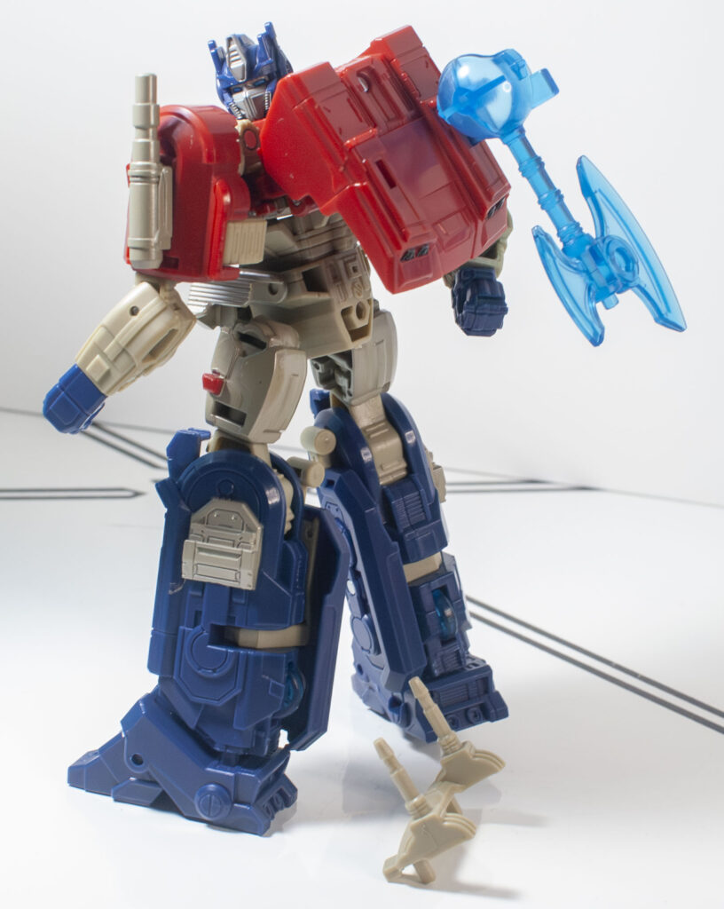Still, provided you managed to get everything pegged in, it’s a more solid and stable alternate mode than you’d expect. It helps if you weave his energy axe between his back legs for storage, as it reinforces the connection between the legs.