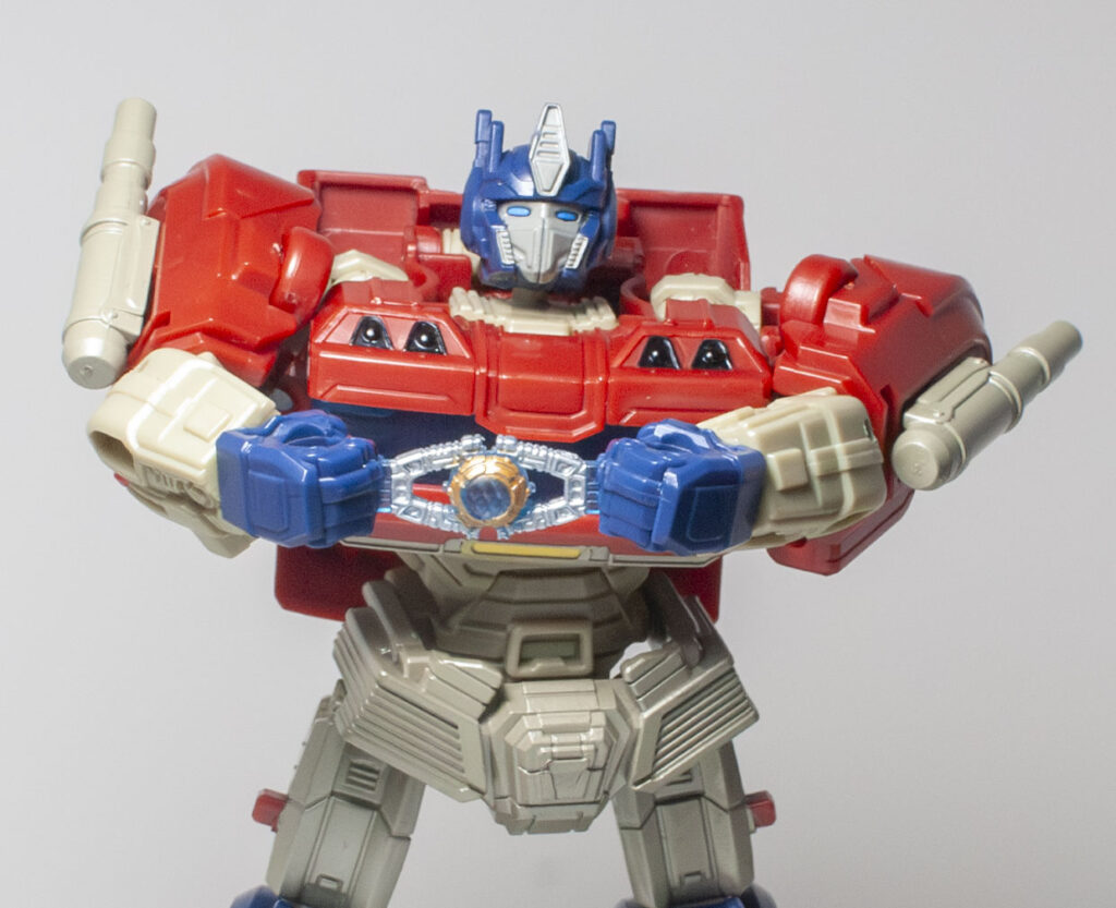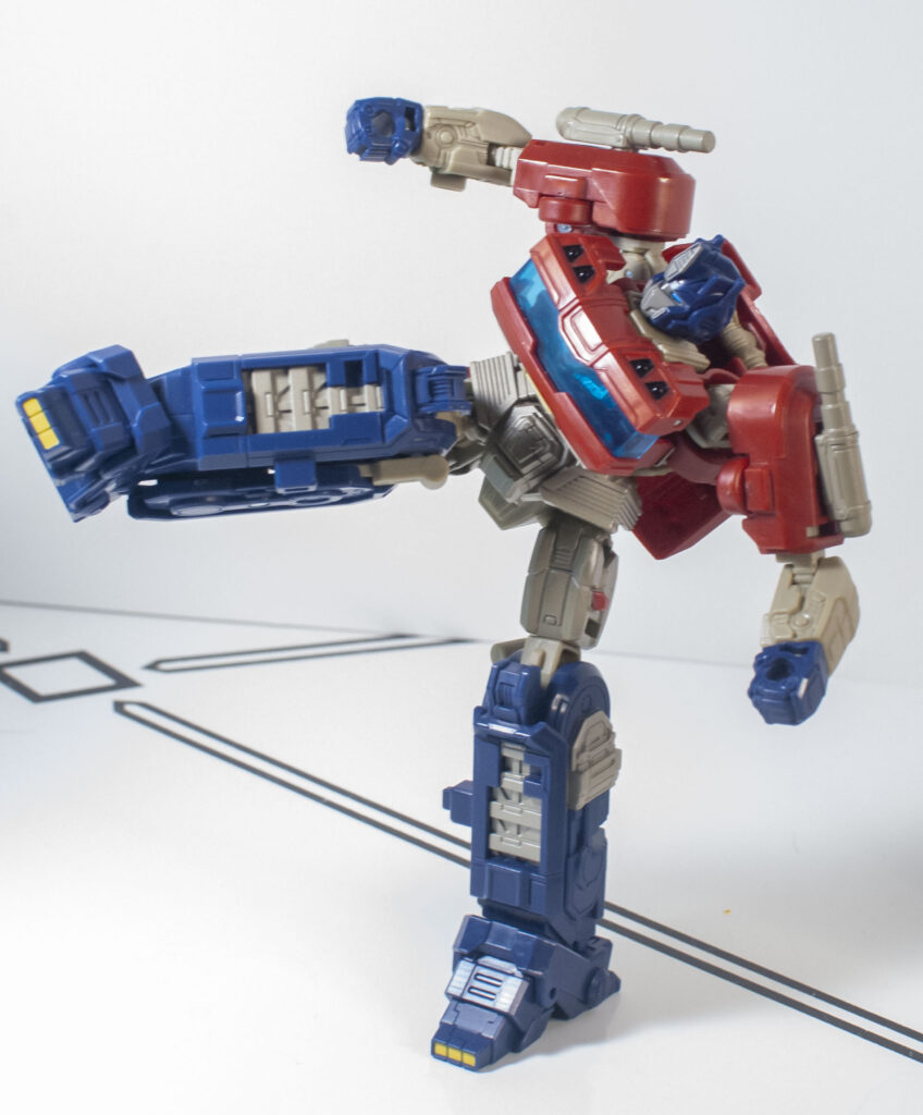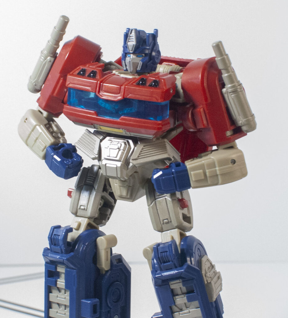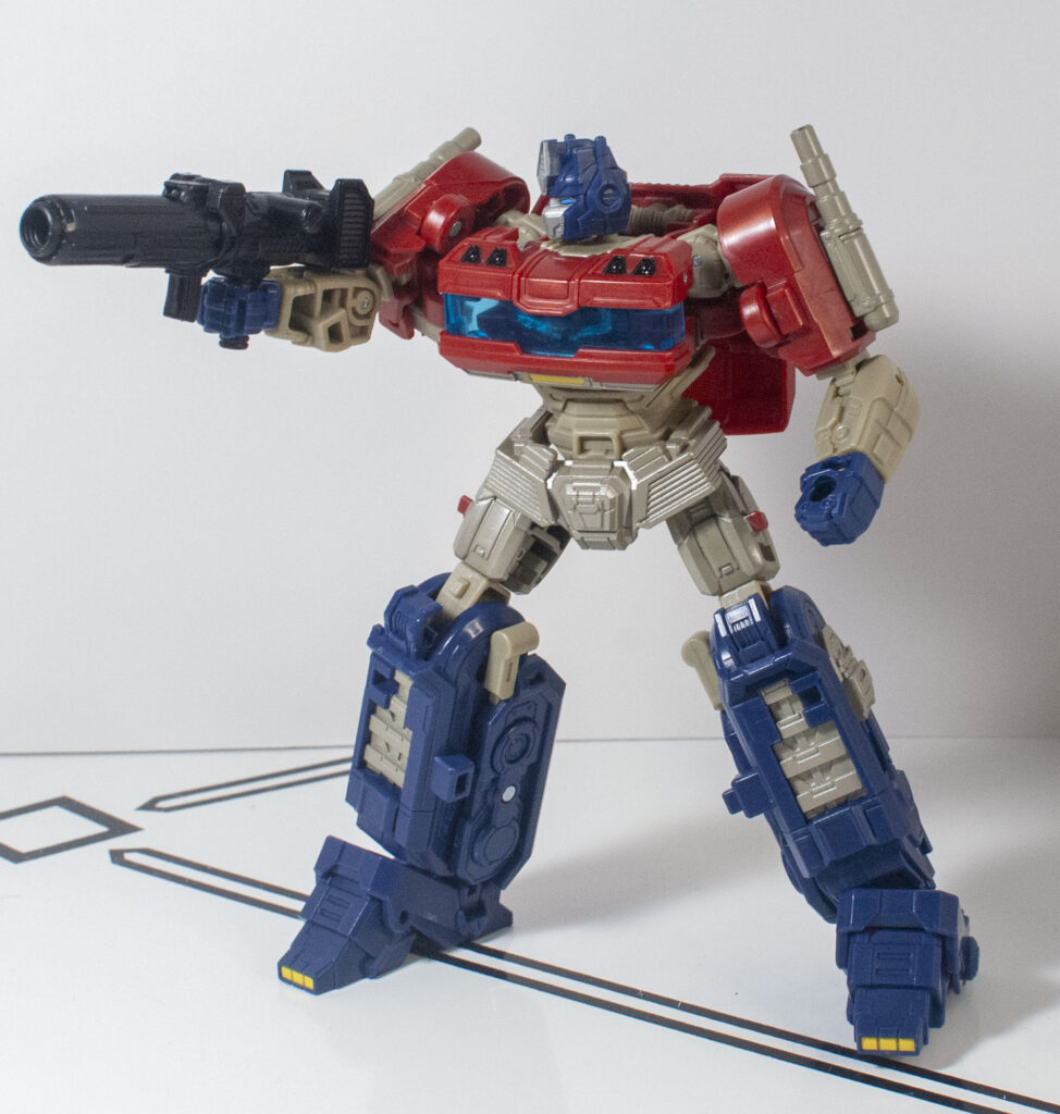 This reads more as just a normal Cybertron-mode Optimus, which makes it easier to fit him in with Transformers from other ranges. A funny thing about his look was that I could swear he reminded me of an old third-party Optimus Prime, and after searching around, I think Maketoys Striker Manus is the guy I was thinking of. Something about the complicated sculpt feels similar.