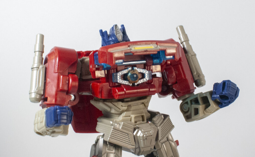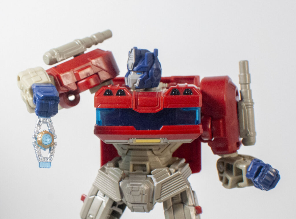 But its best feature has to do with the two clear tabs on either side of it. There’s grooves in his fists that they can slot into, letting him properly “hold” the Matrix by the handles with both hands, or one hand, if you want.