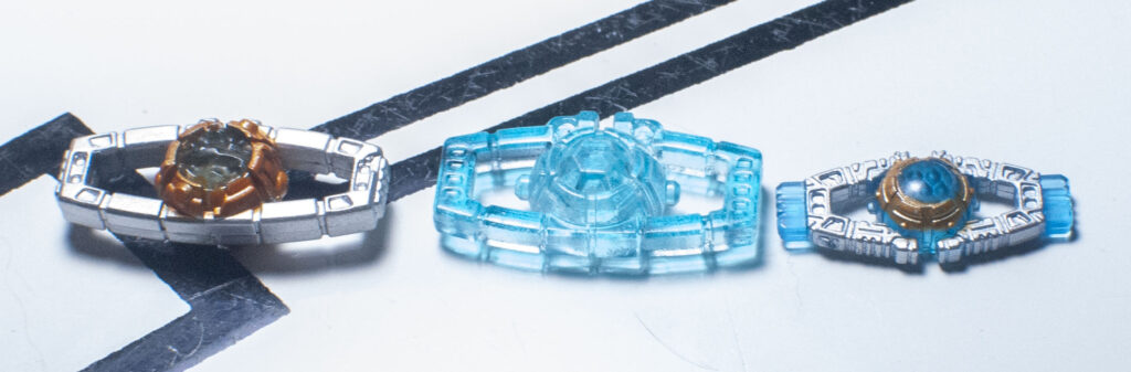 The whole thing’s cast in clear blue, painted silver and gold, and lovingly sculpted to include little details on the crystal inside. Pop it off, and it’s got a proper 5-millimeter peg on the back, for adding it into the Weaponizer system.