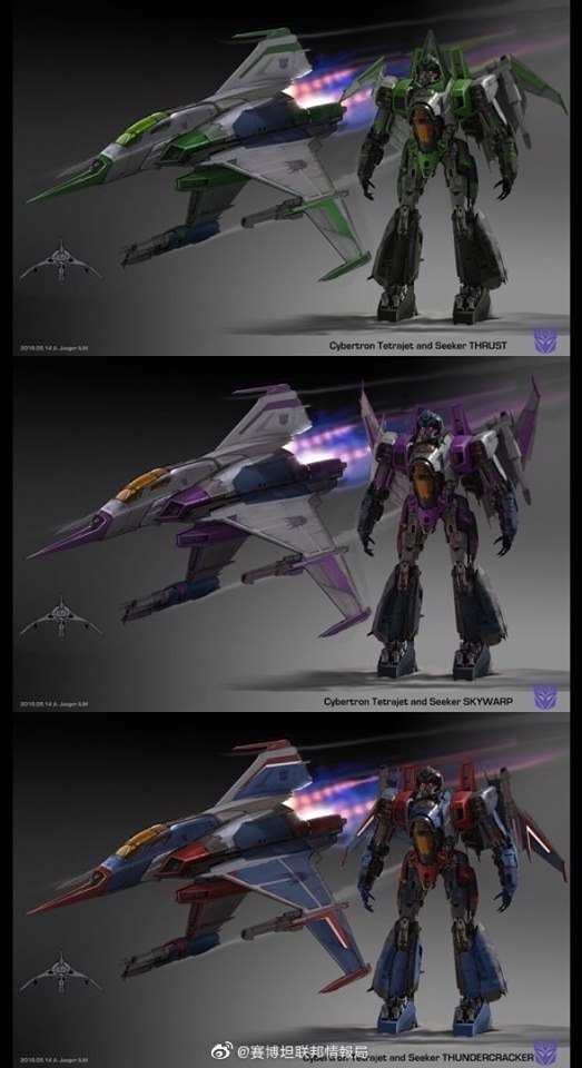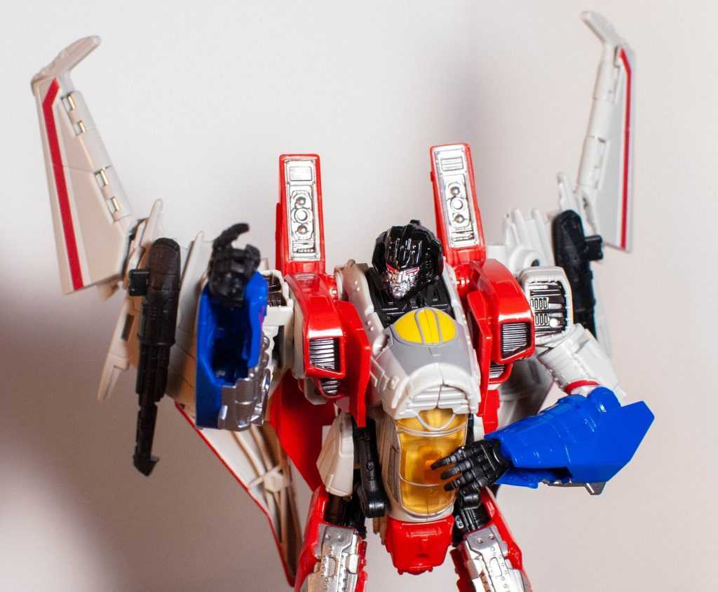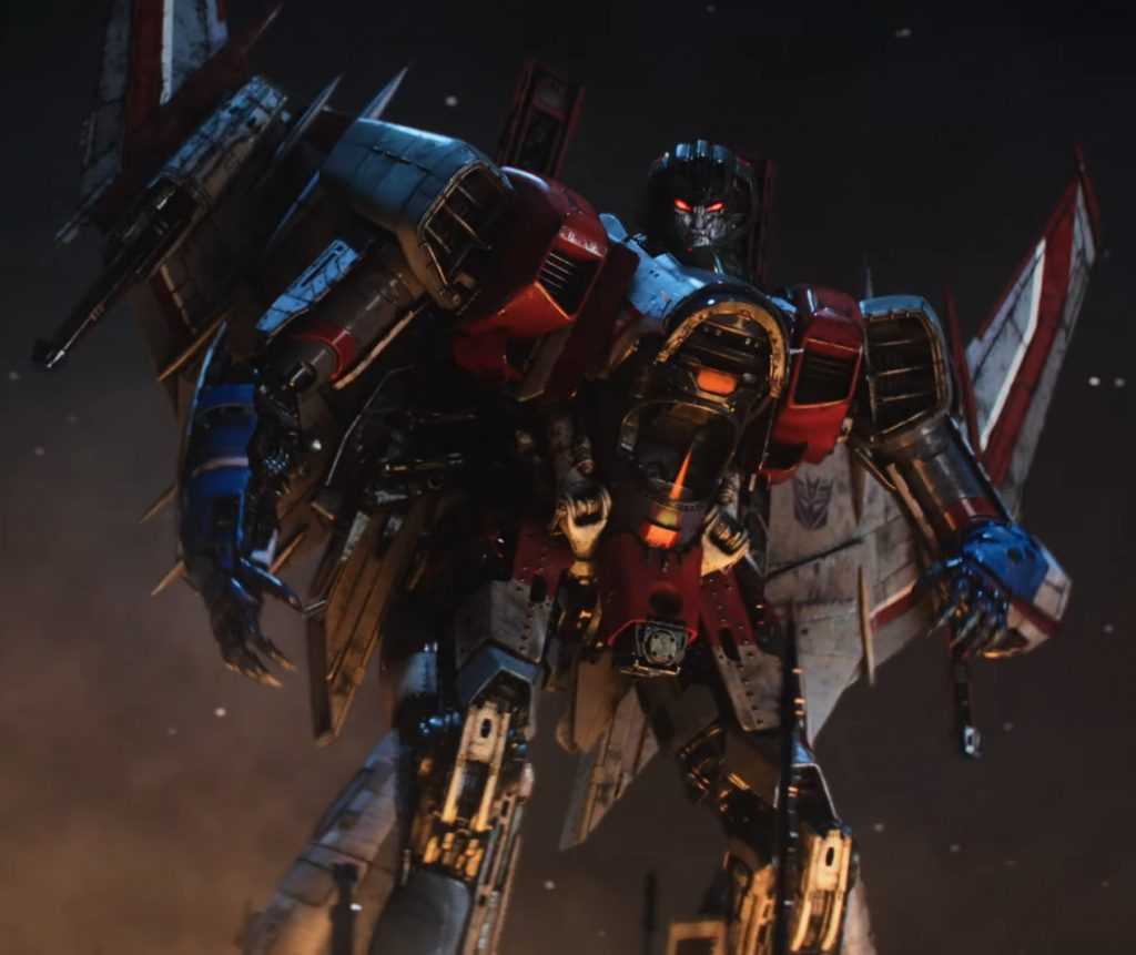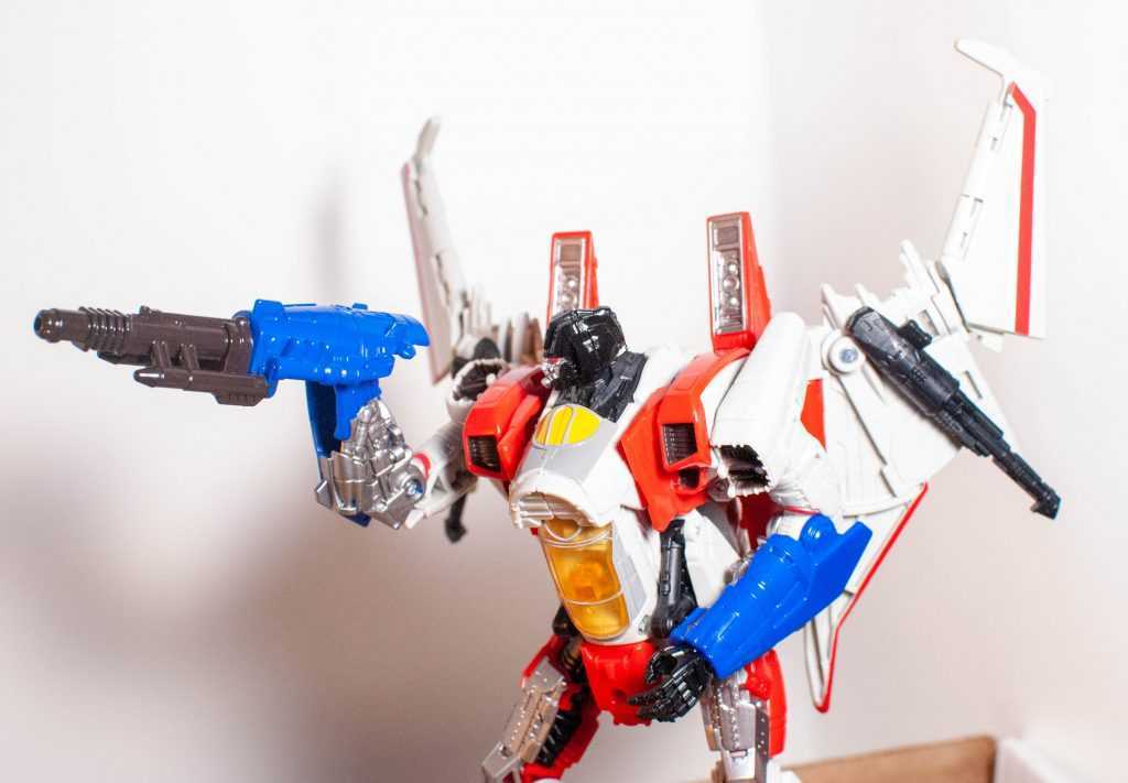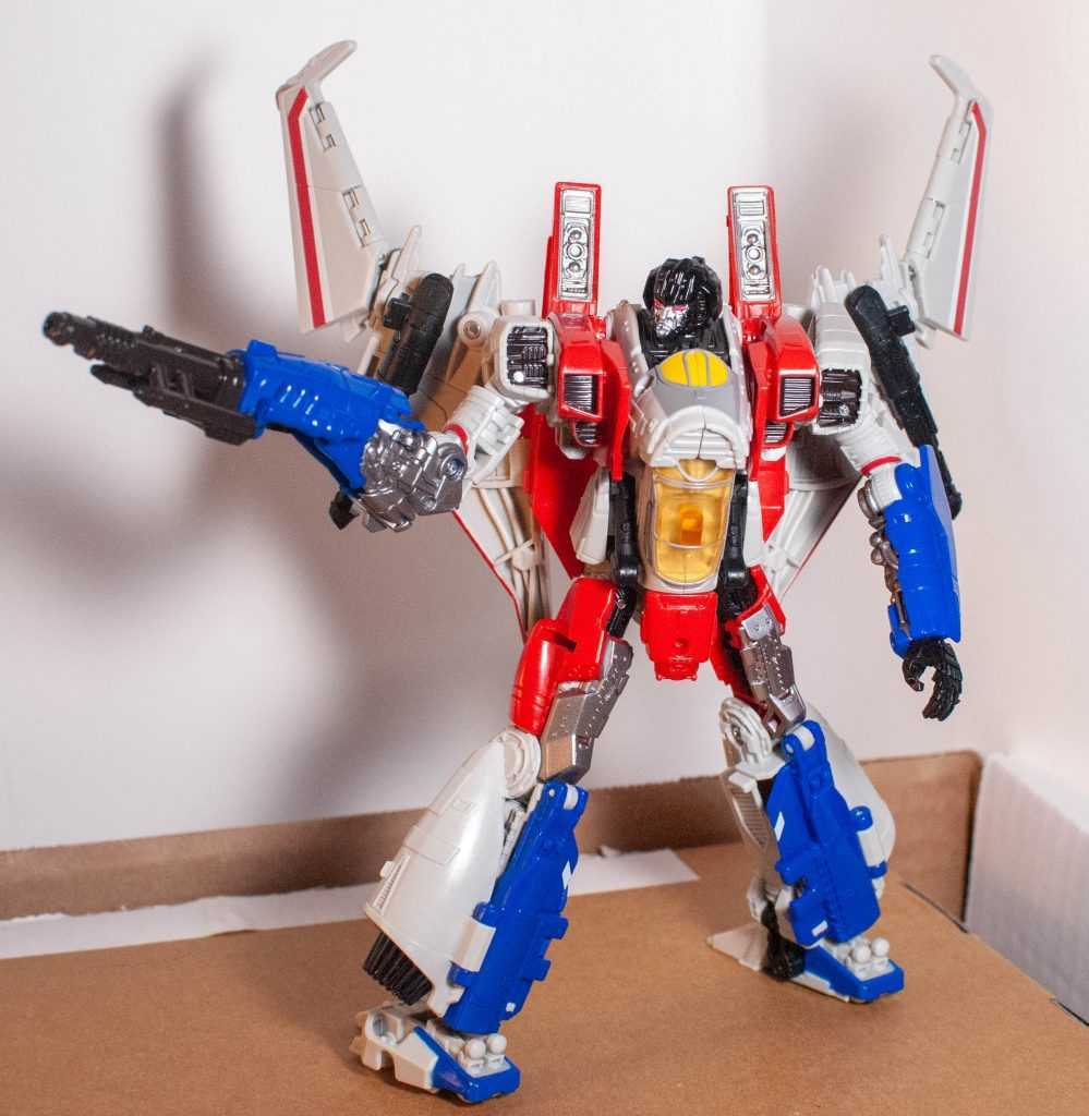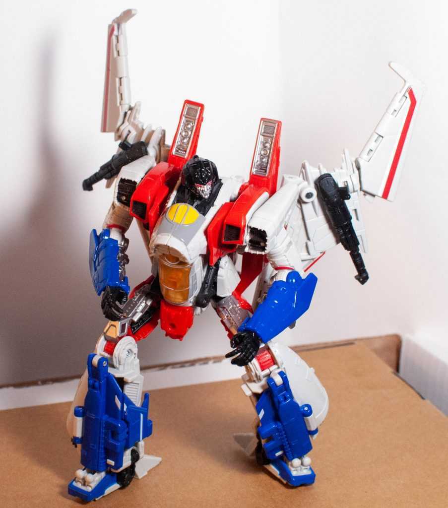 In this form, Starscream’s a reinvention of the classic Tetrajet design, last seen on the Siege Seekers.