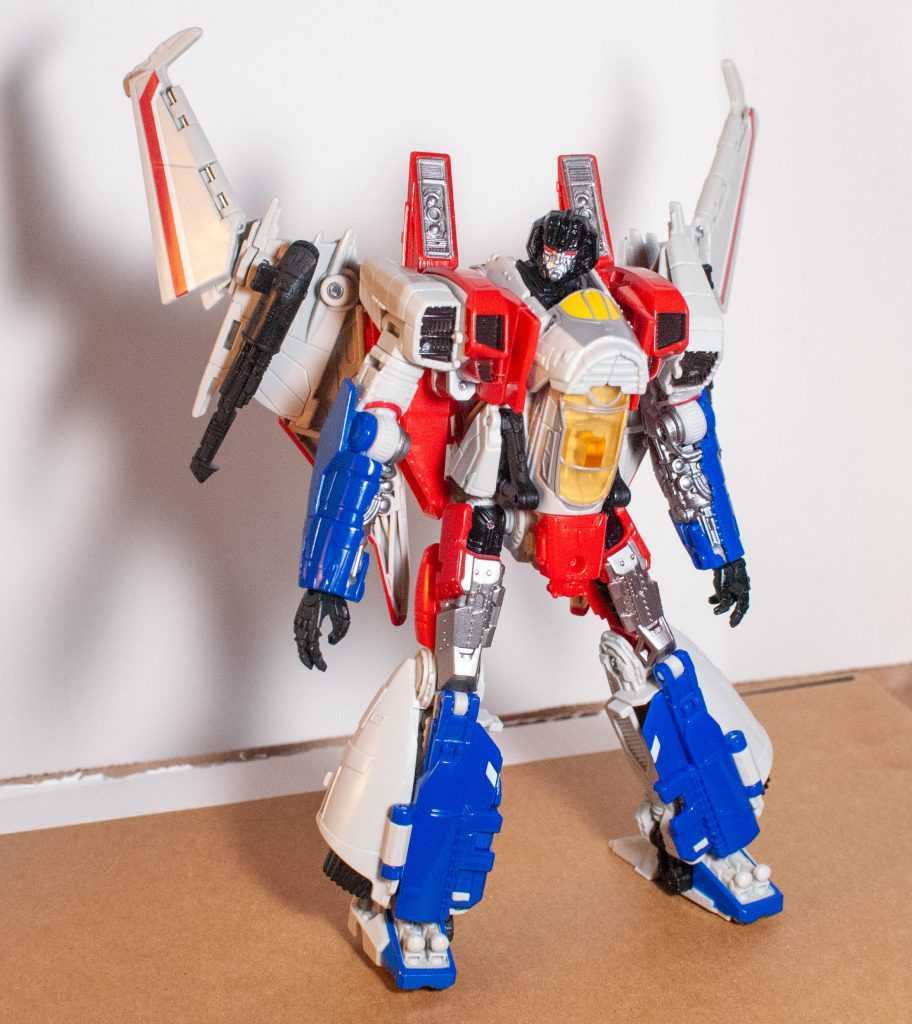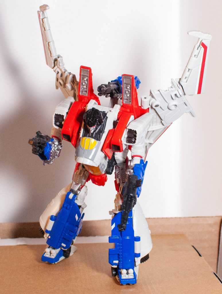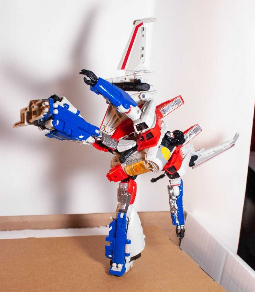 In hand, this is a meaty-feeling Voyager, and he manages to be hefty, solid, and stable. And unlike Blitzwing, his backpack actually stays on, and doesn’t pop out and destabilize the torso, so he’s got one up on his predecessor in that category.