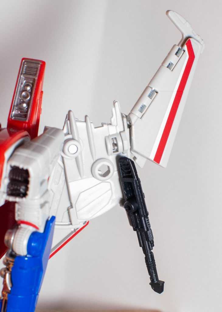 He also has the same sort of three-barreld arm-gun as Blitzwing, made to look like his arm morphed into it, but it doesn’t fit very well.
