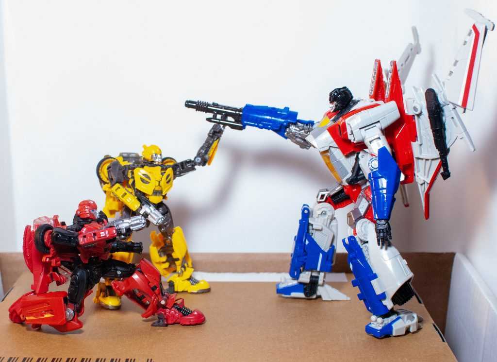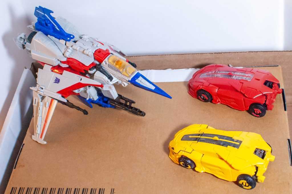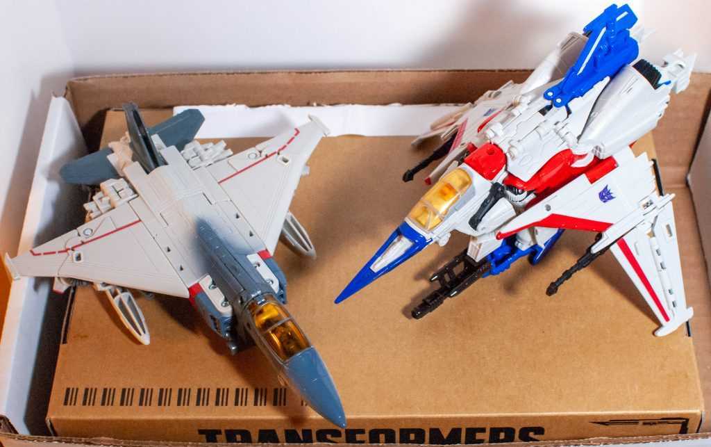 Let’s get one thing out of the way: Despite their similar design, this is a totally different tooling from Studio Series Blitzwing (reviewed here), with zero parts shared between them, thanks to Starscream transforming into a different alternate mode. Even little parts that you’d think were the same are subtly different sculpts.