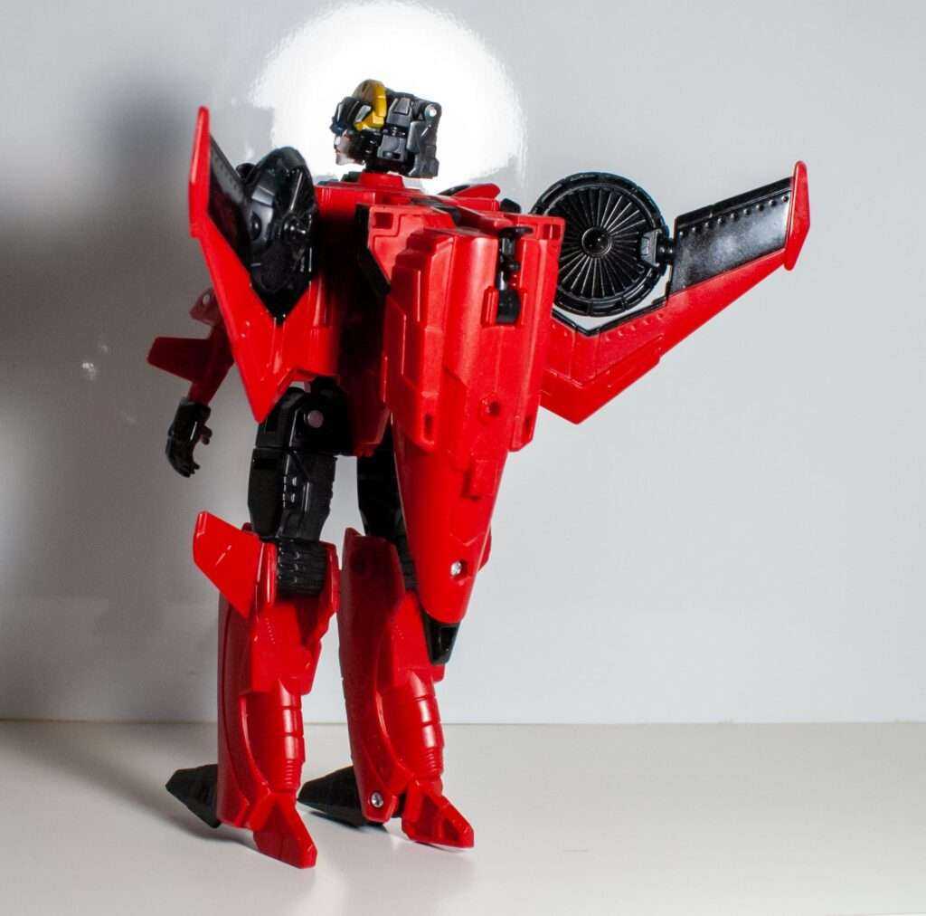 Again, this is basically the opposite of the Thrilling 30 version’s fiddly “line up all the little tabs” kind of transformation, to the extreme. In fact, I’d describe this version of Windblade as being Generation One levels of simple.