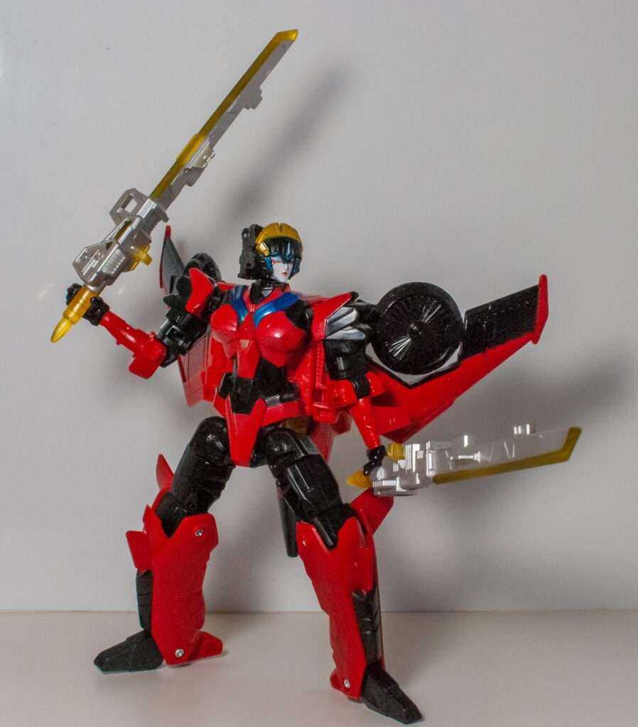 While this is a definite improvement on Windblade’s Thrilling 30 release, it’s still kind of a flawed figure, between her strange proportions, too-simple altmode, and a few other small things. Still, there’s a lot to like about this figure. It’s pleasantly chunky, has a pair of cool weapons, and evokes the character herself really well.