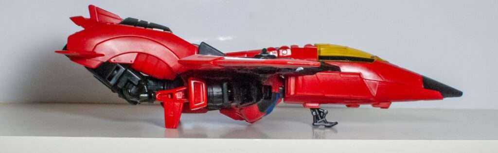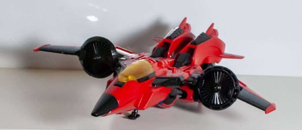 For colors, she’s again, almost entirely red and blue, with the only variation being a clear yellow cockpit upfront. It’s just varied enough to avoid making her look plain.