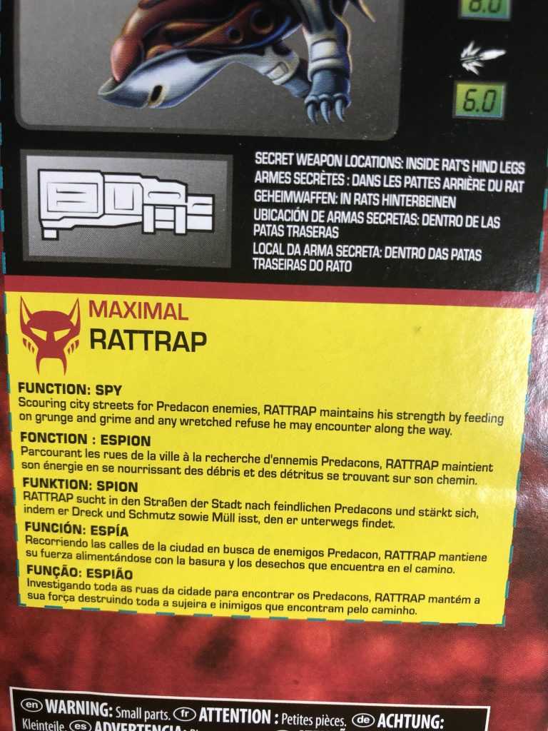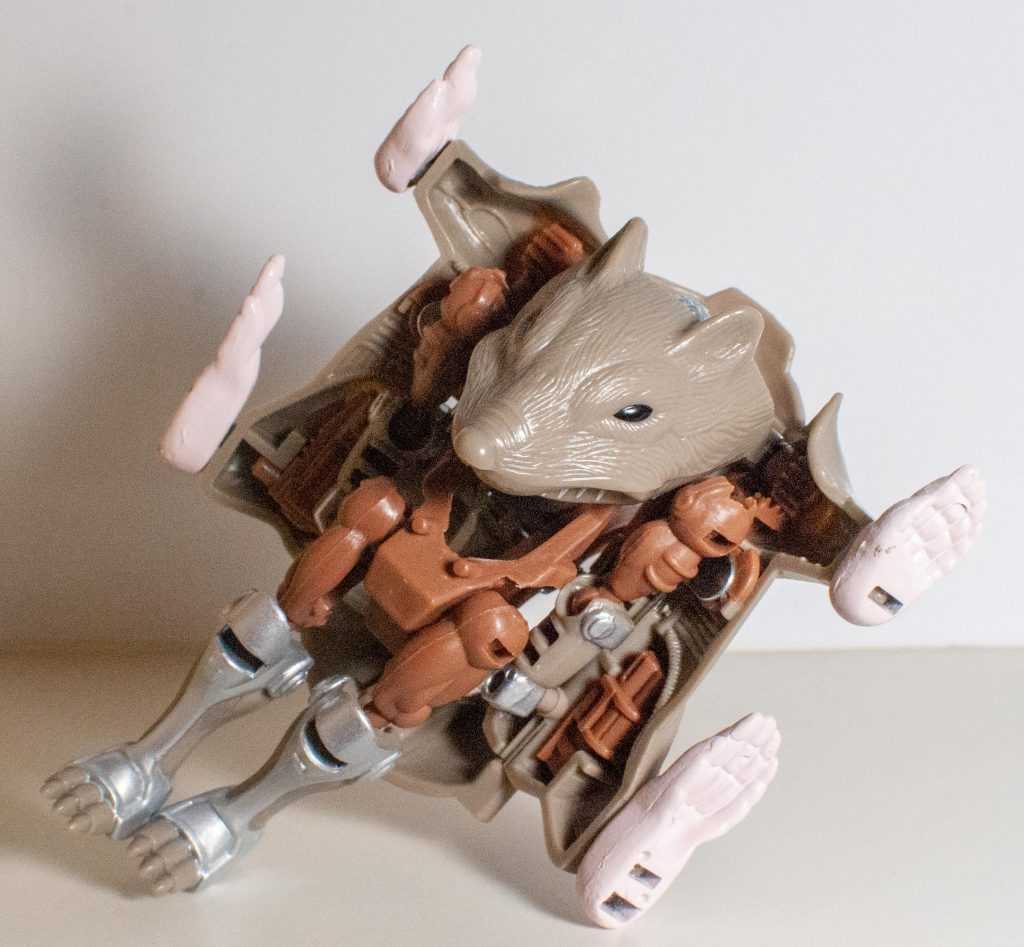 Compared to the miniscule, mouse-sized Kingdom rat, this Ratrap’s a lot bigger in his rat mode, and cuts a good-looking silhouette, even if he’s a bit chubby.
