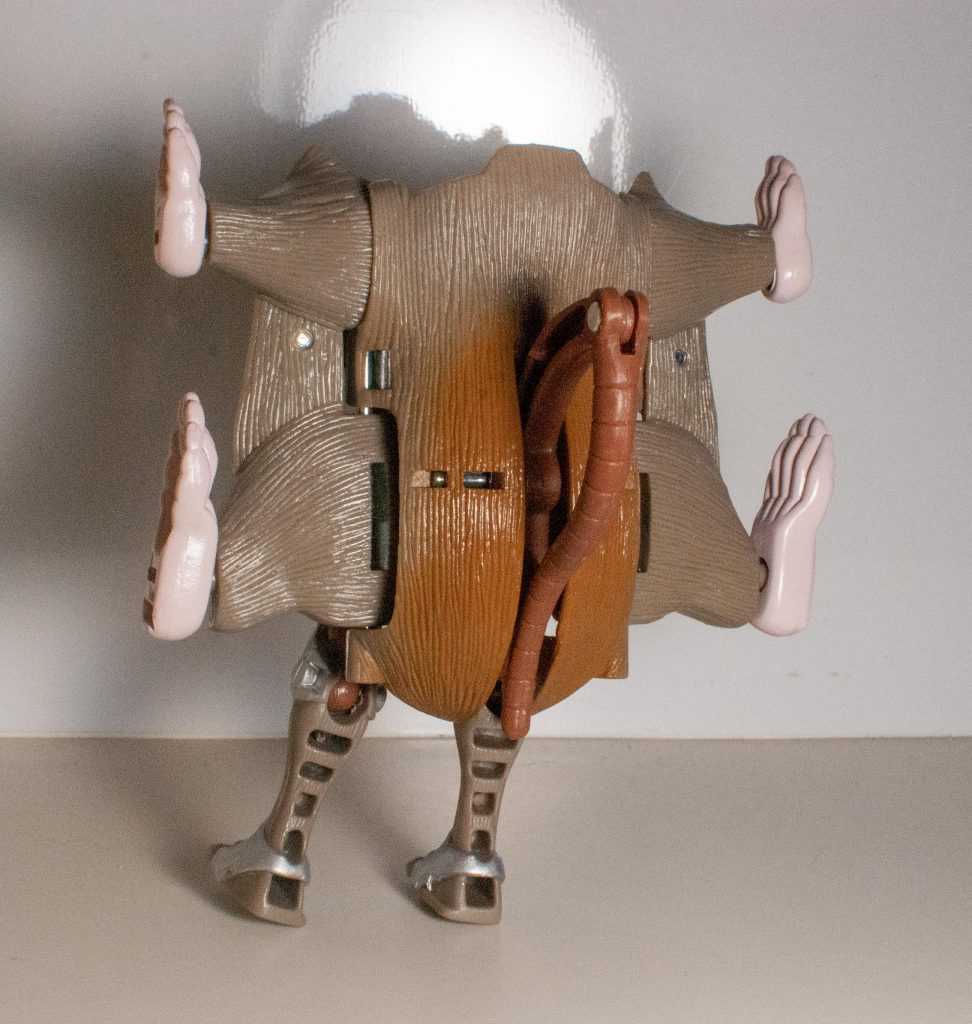 The show’s CGI model scrunched up his rat-parts backpack, made his proportions a bit more streamlined, and gave him brighter colors, but all the broad strokes of the rat-chested design are pretty much right here, as you remember them. Probably his most obvious difference is the figure’s headsculpt’s mouth, which gave him almost turtle-like jaws, instead of the stylized rat face the show would go with, though the rest of the sculpt, including his weird exposed brain, is pretty accurate.