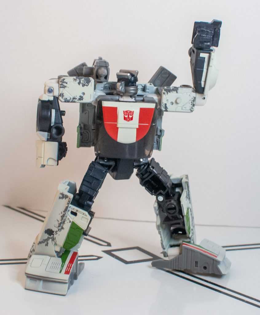 This definitely isn’t the best Generations Autobot Carformer ever made, but he’s pretty good. I’d call him average by the standards of Siege and Earthrise, but to be clear, Siege and Earthrise’s average was pretty strong, because it really represented a jump in quality. As for Wheeljack, he looks like who and what he’s supposed to be, exudes good energy, and poses and transforms well. He’s a lot plainer than I’d like, though, in terms of both accessories, and general vibes (especially in a post-Origin-Jazz world), which might be why it took me so long to get around to him. Still, the only real issue he’s got is how tight his joints are, but I’d rather have that problem than the alternative. As for the Netflix deco, the whole battle damage aesthetic wasn’t everyone’s cup of tea (myself included), but this specific use of it happened to actually really work, thanks to the character it was applied to, and wound up looking really nice in this context, enough to make me prefer this deco to the “clean” version.